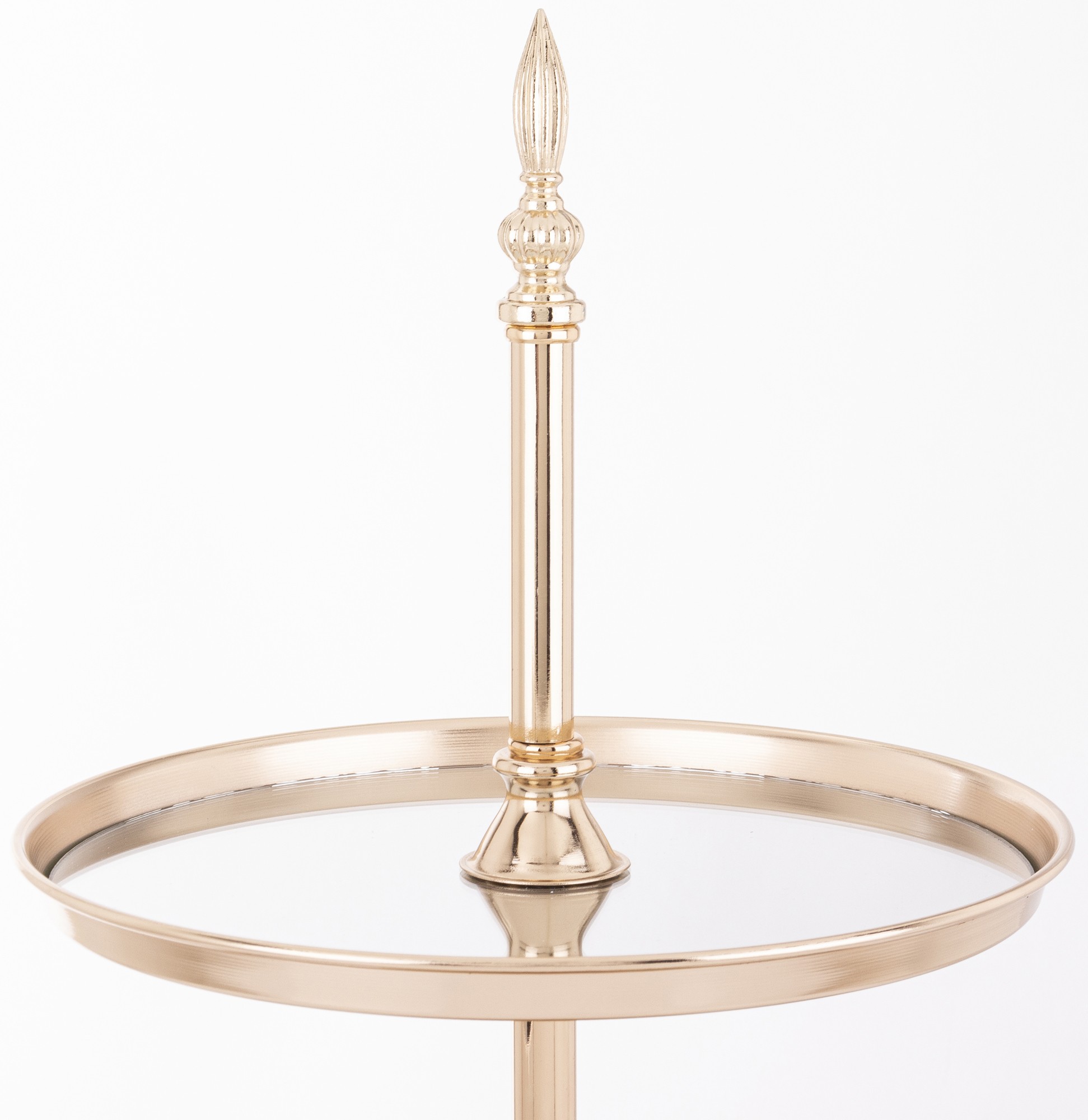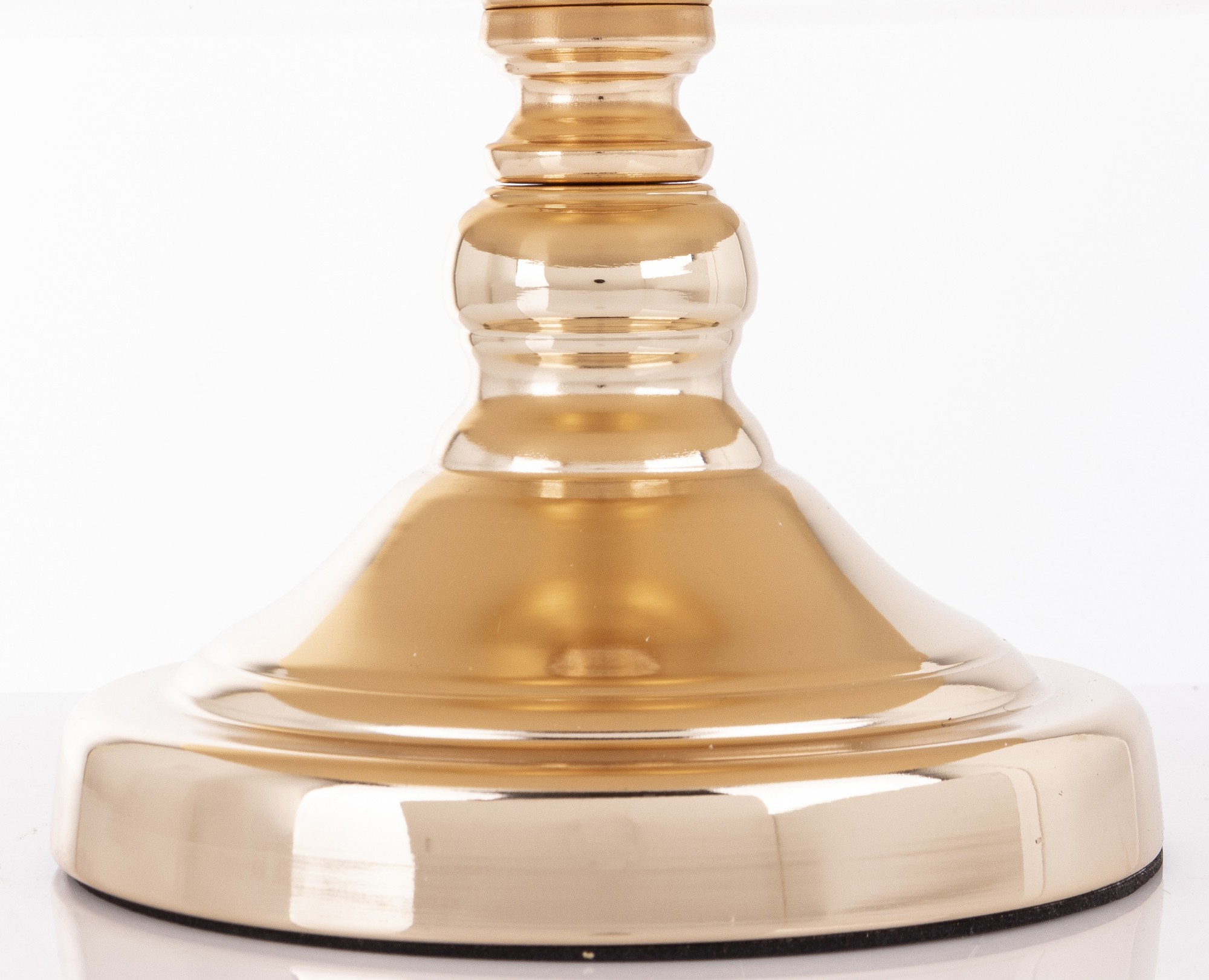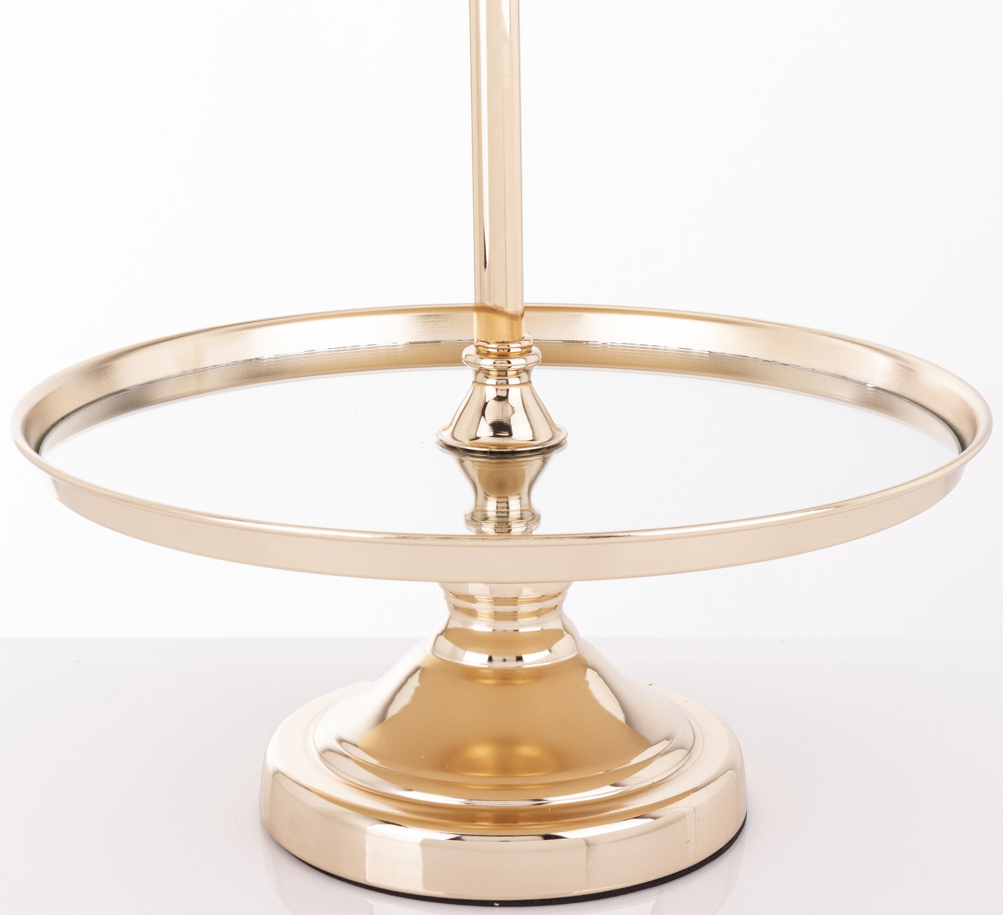Náš elegantný zrkadlový etažér s dvoma poschodiami je dokonalým riešením pre ľudí, ktorí hľadajú krásnu a štýlovú dekoráciu pre svoj domov. Tento etažér vyrobená z vysoko kvalitného skla a kovu sa vyznačuje jedinečnou kombináciou moderného dizajnu a klasickej elegancie. Zlatý povlak na kovovom ráme dodáva jedinečný vzhľad, ktorý dokonale zapadá do trendov interiérového dizajnu. Dve sklenené úrovne umožňujú umiestniť rôzne druhy jedla a dekorácie.