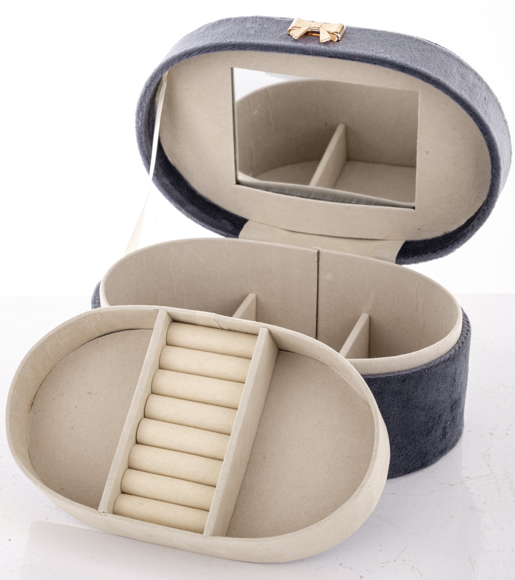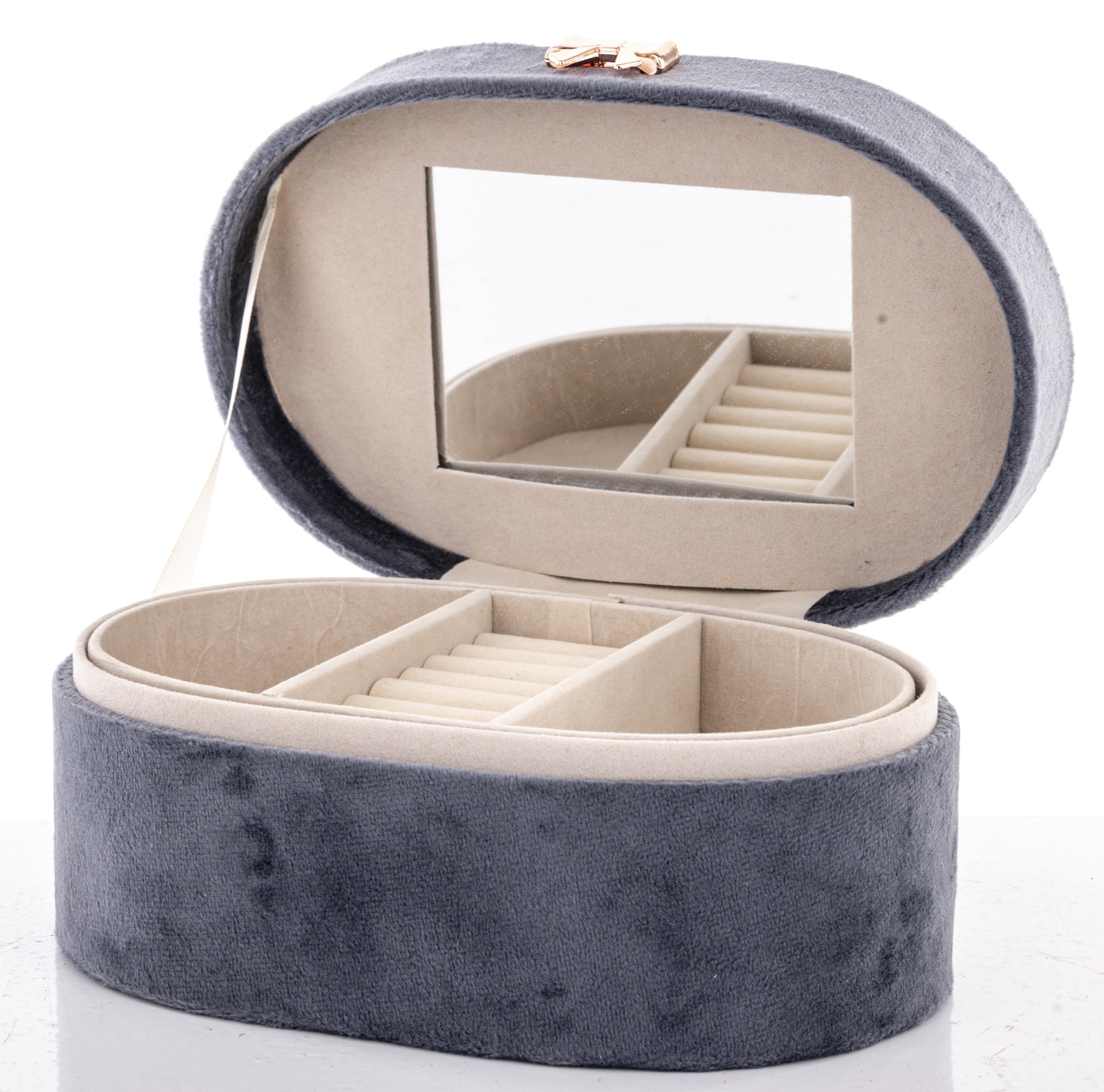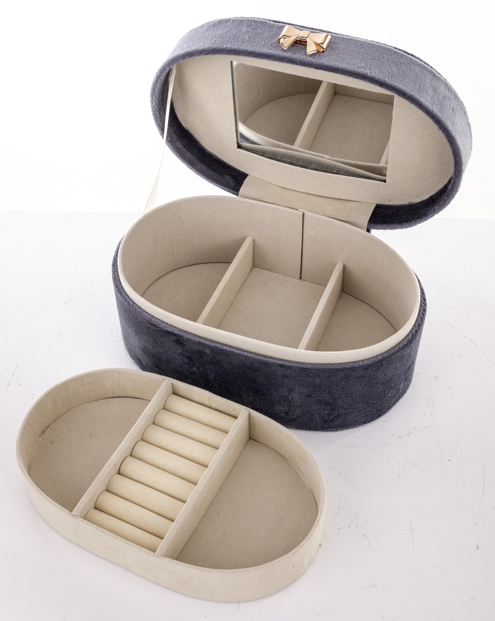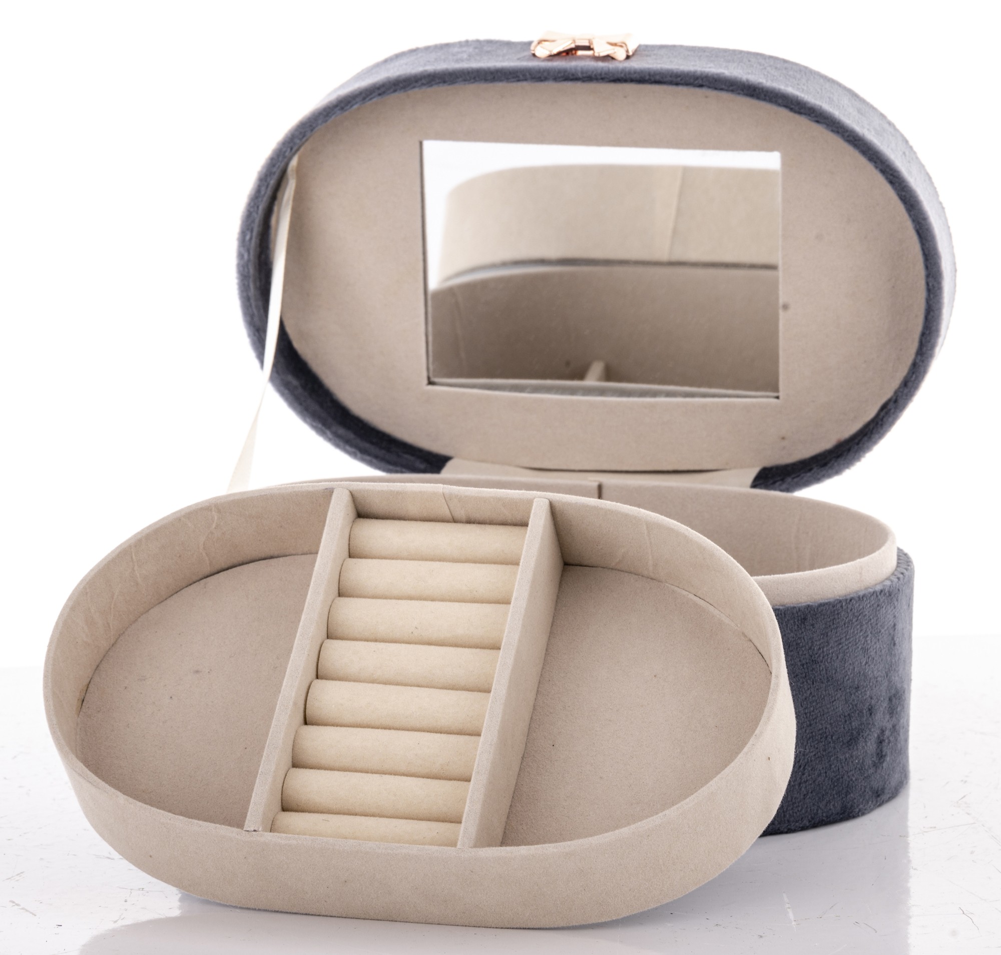 Vrchná vrstva boxu je vyrobená z látky, ktorá mu dodáva príjemný na dotyk a estetický vzhľad. Krabička je dostatočne veľká na to, aby sa do nej zmestilo množstvo rôznych druhov šperkov, no zároveň dostatočne malá, aby sa zmestila do väčšiny skriniek a komôd.