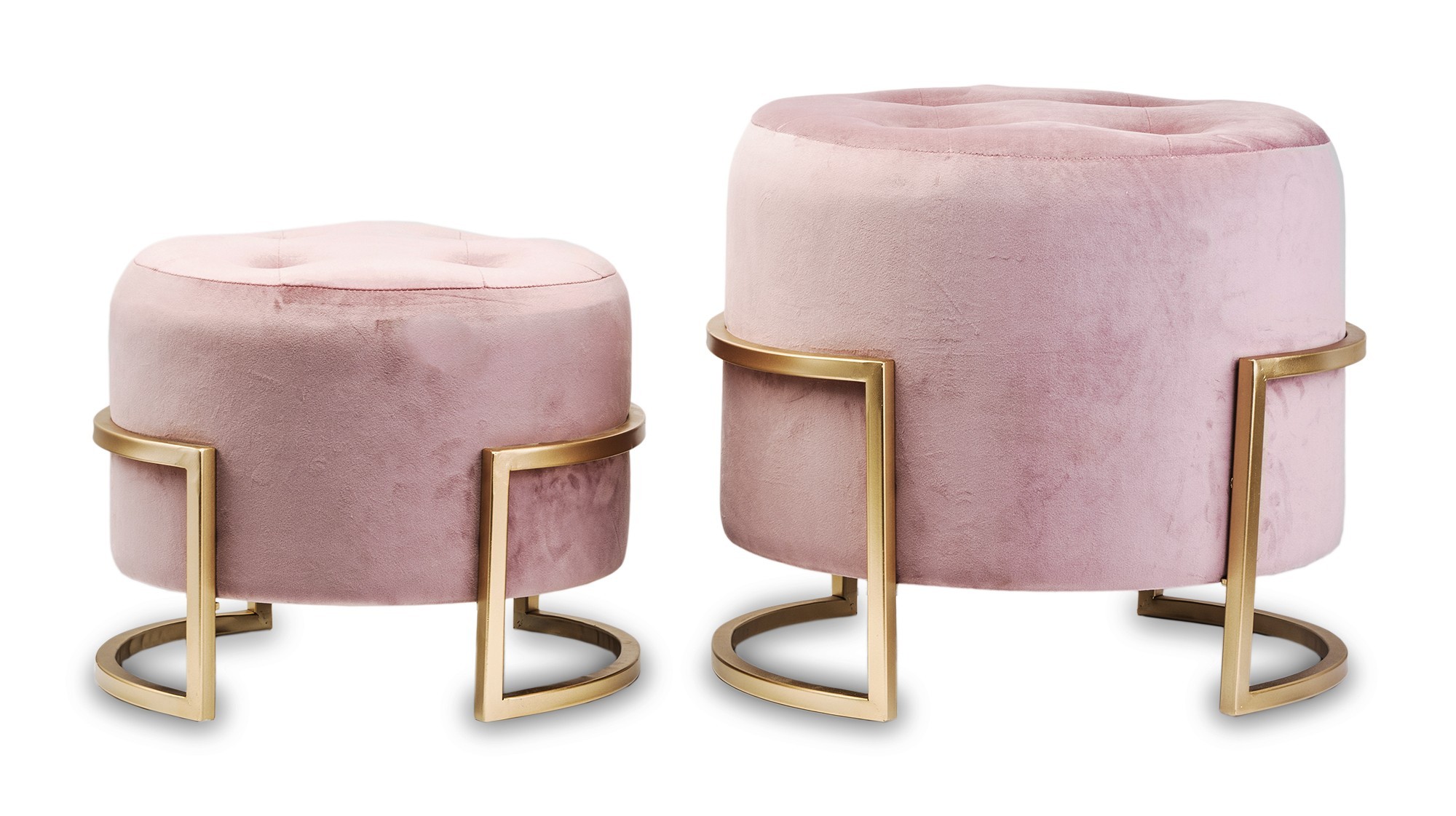 Prešívaná Ružová Taburetka Set 2ks