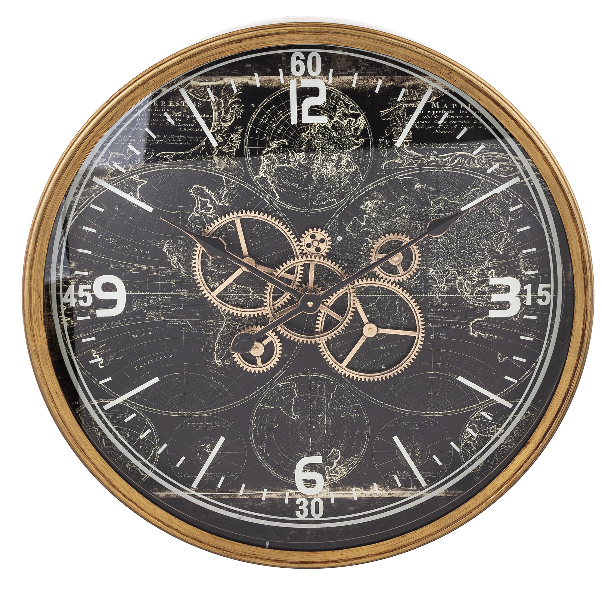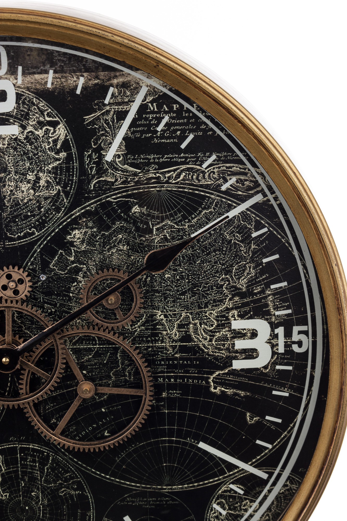 Tieto nezvyčajné hodiny majú originálny ciferník, na ktorom je namaľovaná starožitná mapa zemegule, čo im dodáva jedinečný charakter a štýl.