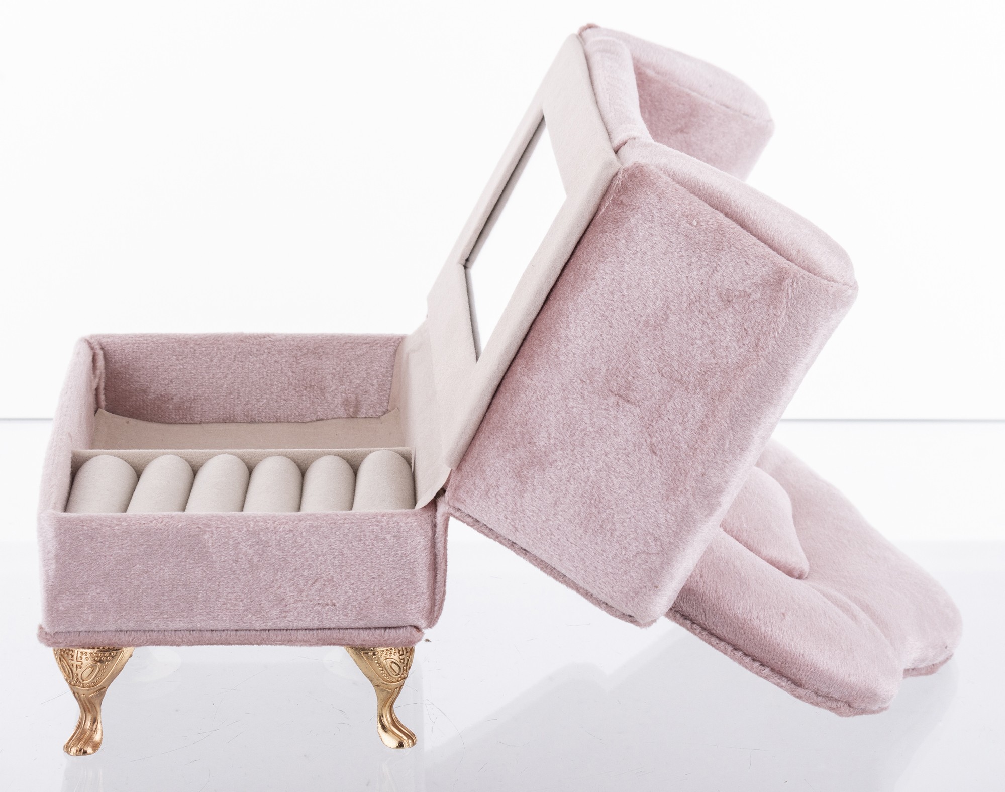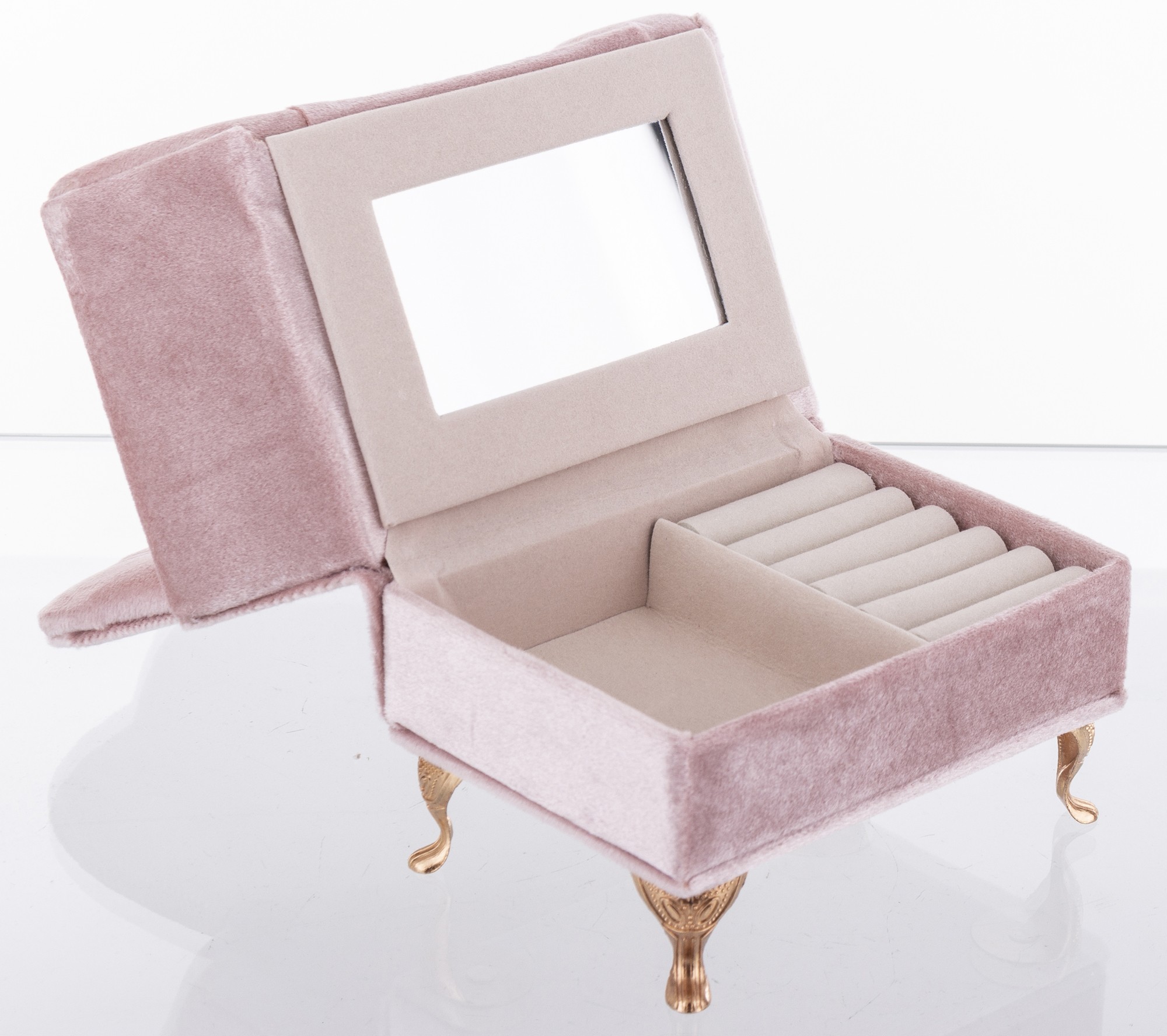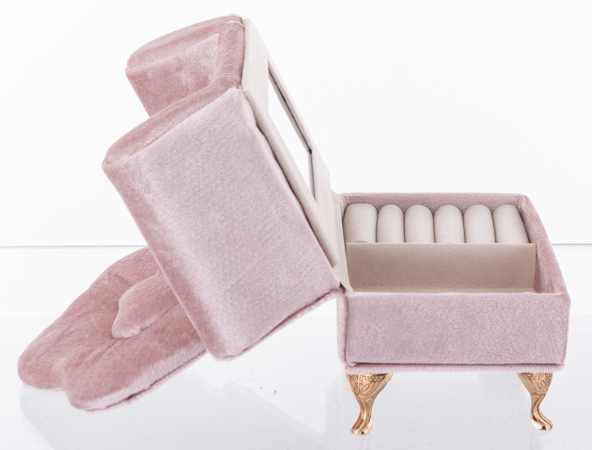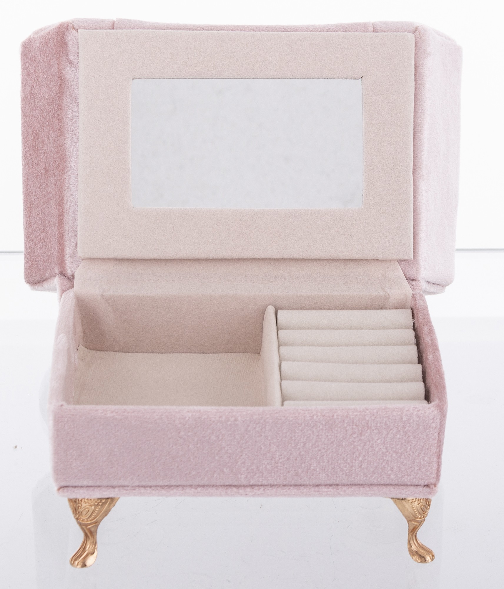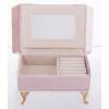 Vrchná vrstva boxu je vyrobená z látky, ktorá mu dodáva príjemný na dotyk a estetický vzhľad. Krabička je dostatočne veľká na to, aby sa do nej zmestilo množstvo rôznych druhov šperkov, no zároveň dostatočne malá, aby sa zmestila do väčšiny skriniek a komôd.