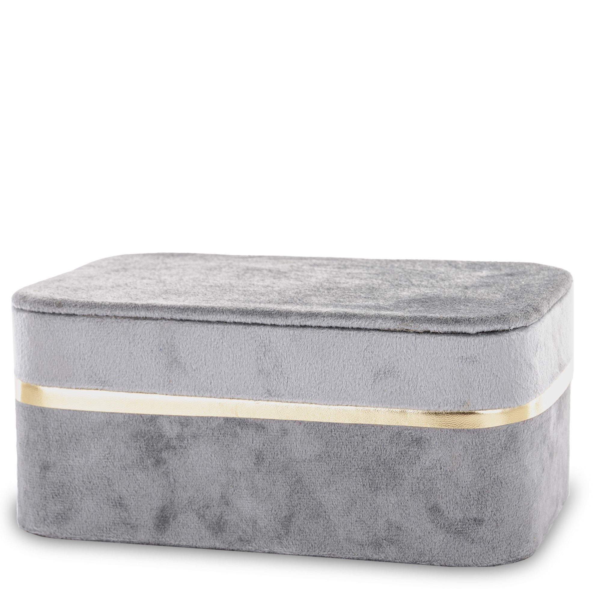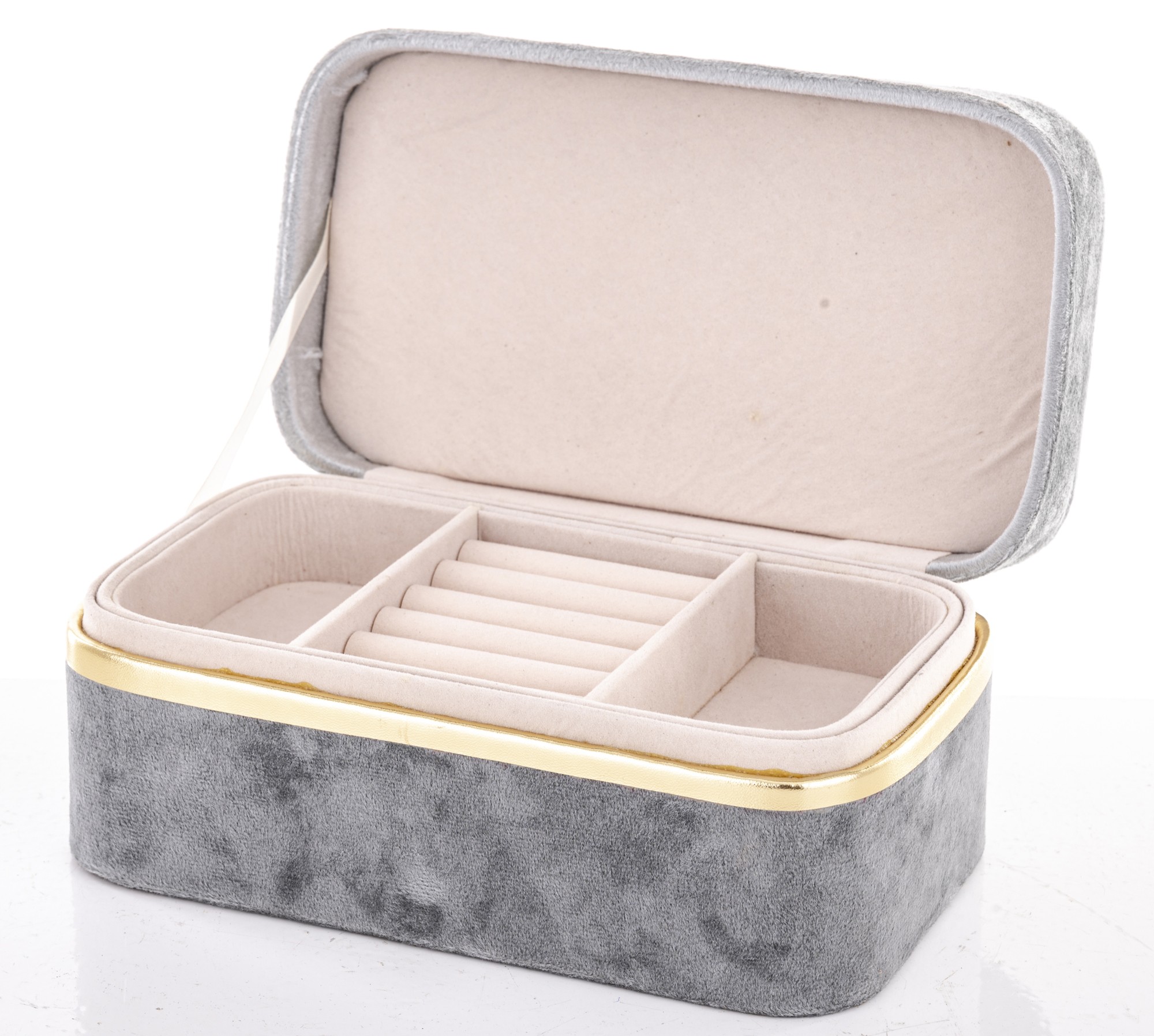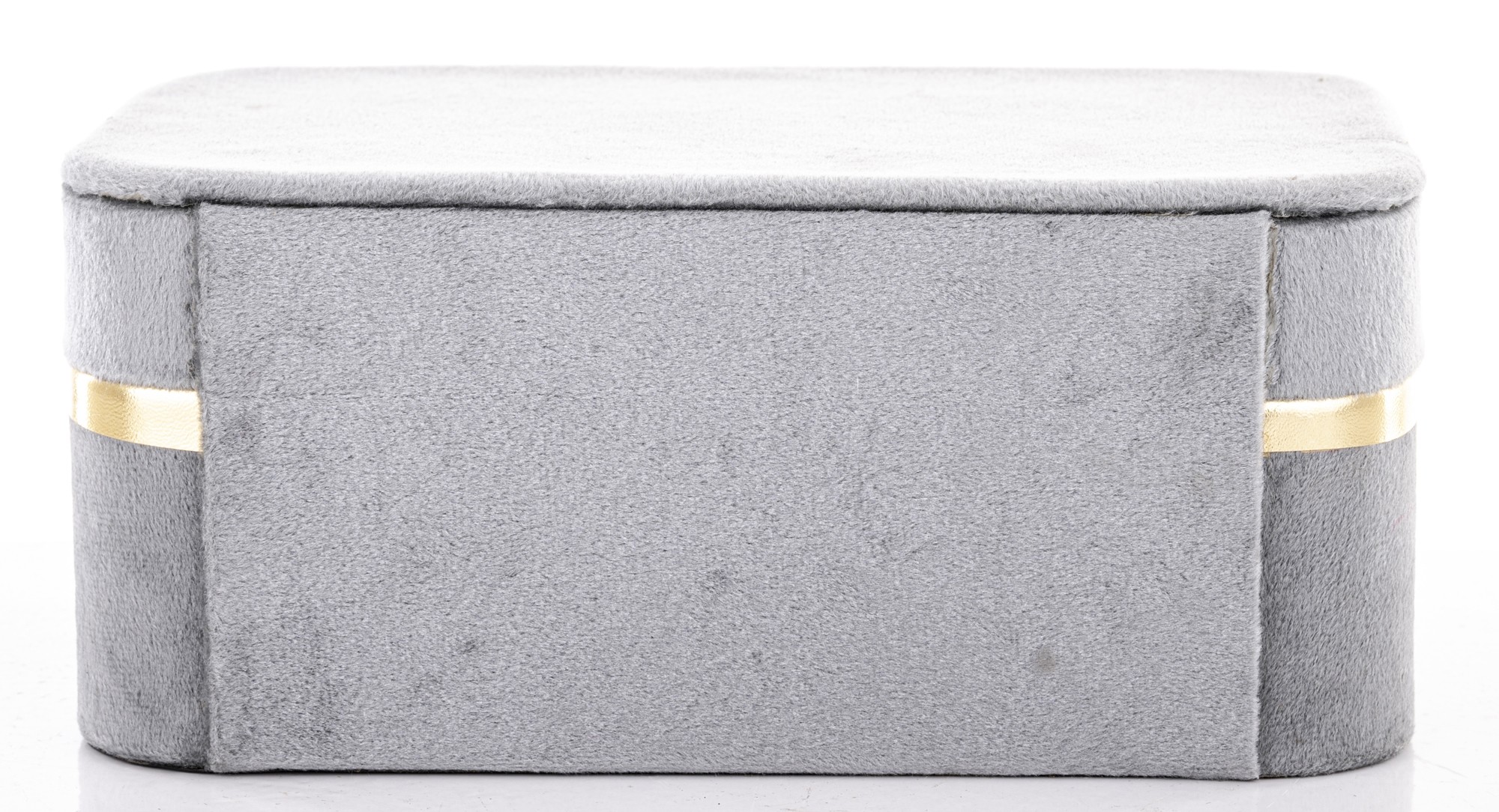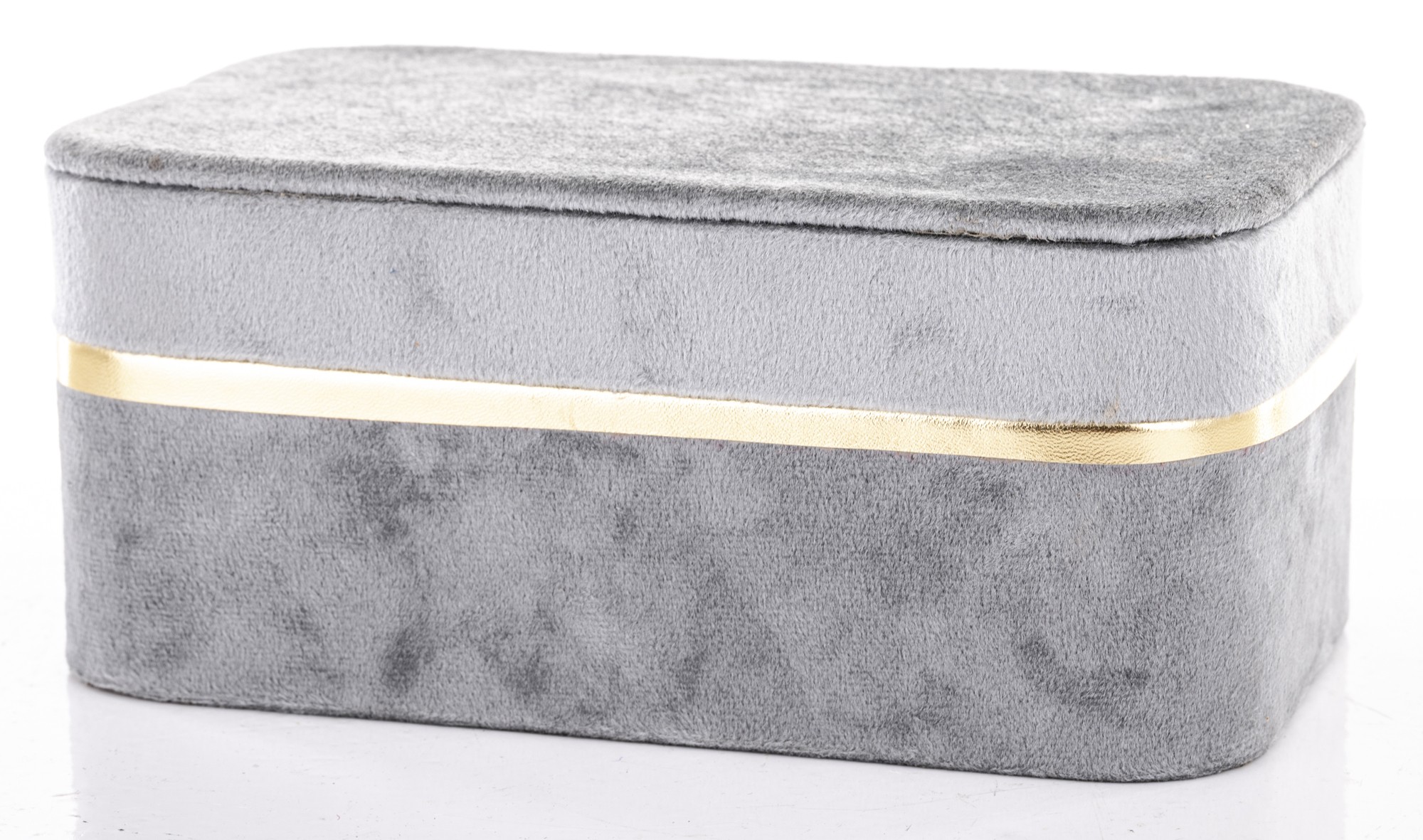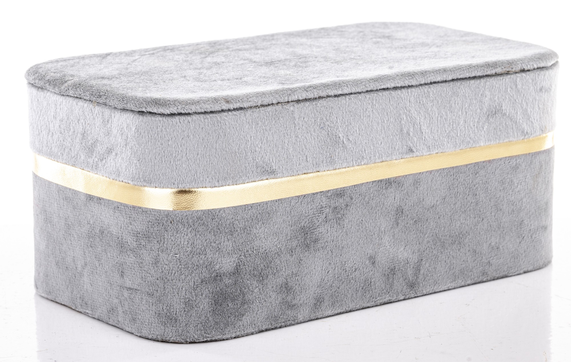 Vrchná vrstva boxu je vyrobená z látky, ktorá mu dodáva príjemný na dotyk a estetický vzhľad. Krabička je dostatočne veľká na to, aby sa do nej zmestilo množstvo rôznych druhov šperkov, no zároveň dostatočne malá, aby sa zmestila do väčšiny skriniek a komôd.