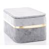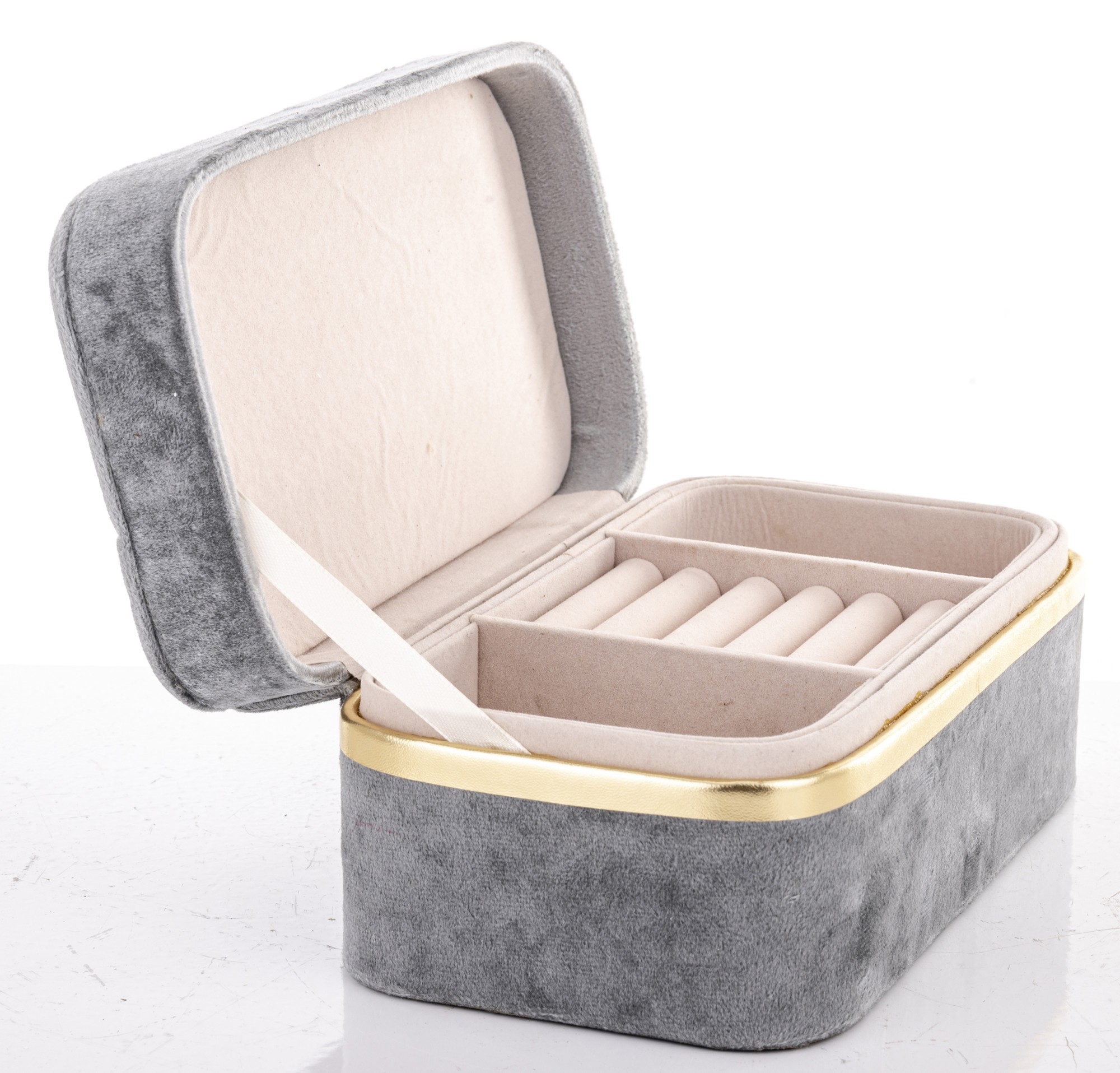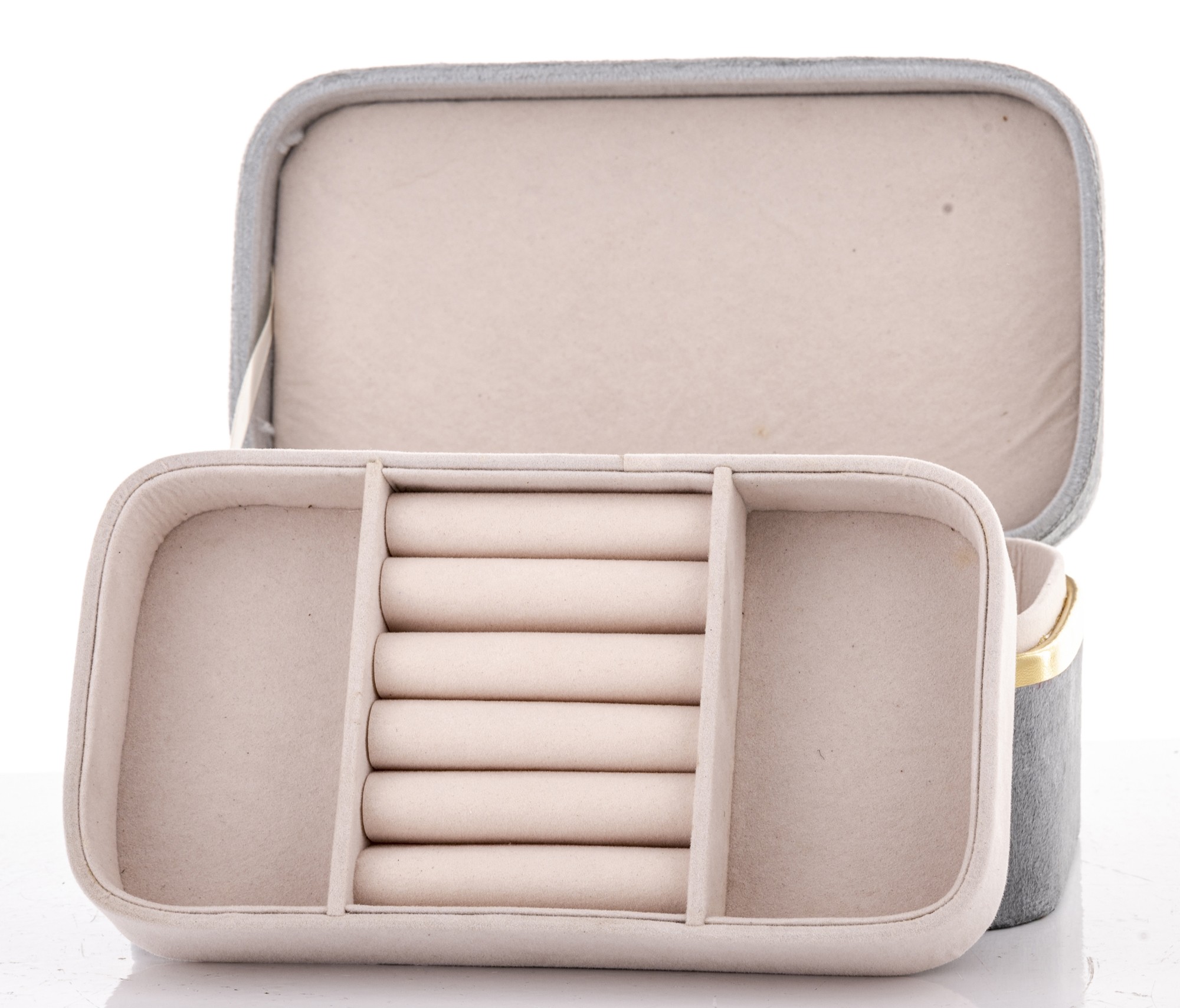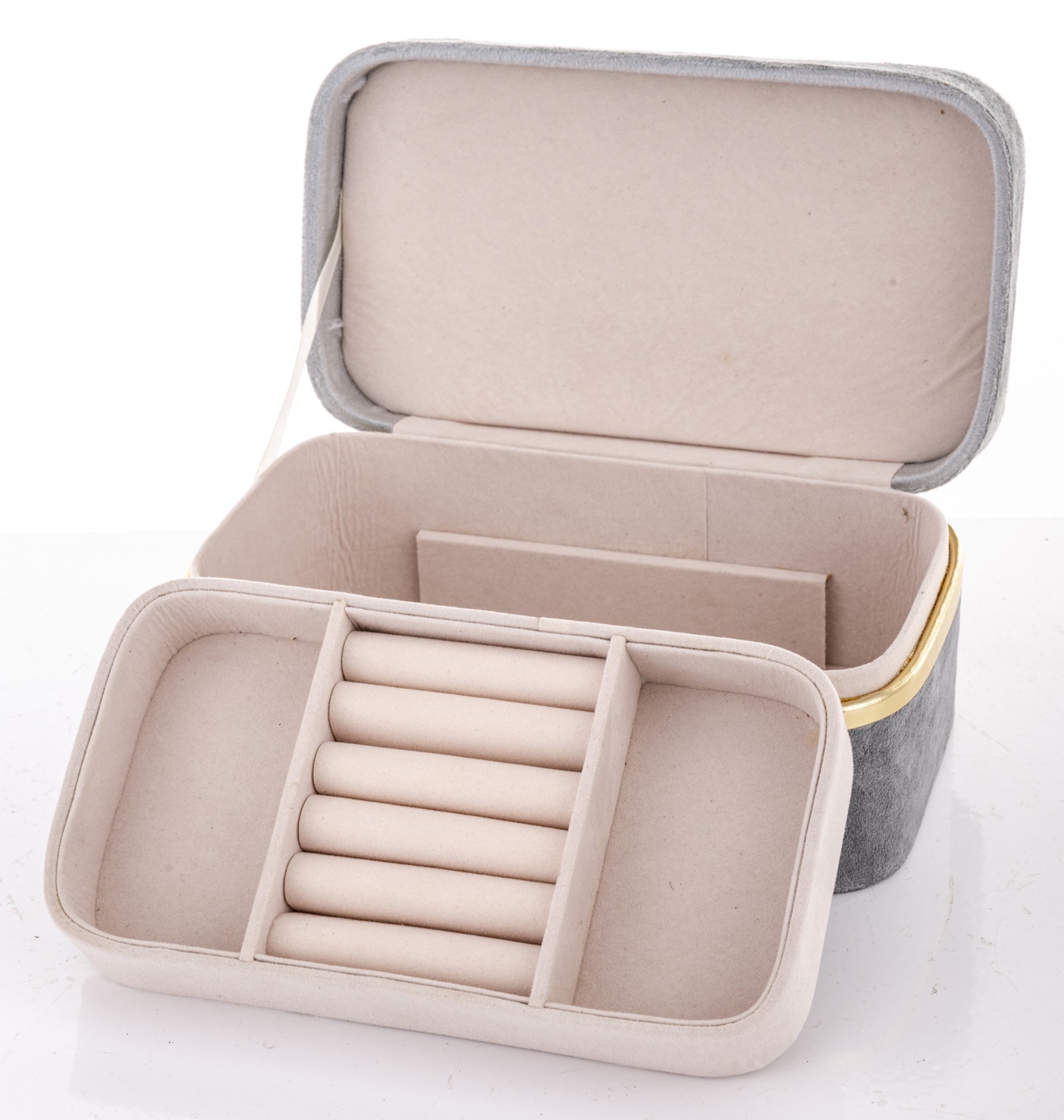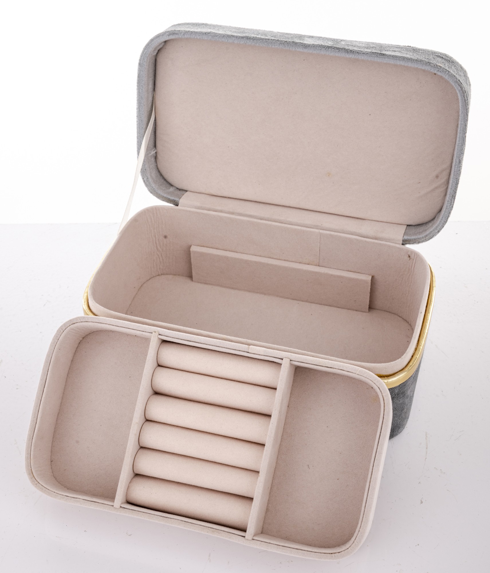 Vrchná vrstva boxu je vyrobená z látky, ktorá mu dodáva príjemný na dotyk a estetický vzhľad. Krabička je dostatočne veľká na to, aby sa do nej zmestilo množstvo rôznych druhov šperkov, no zároveň dostatočne malá, aby sa zmestila do väčšiny skriniek a komôd.