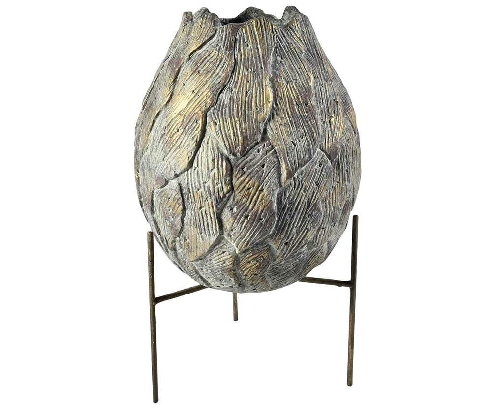 Štruktúrovaná váza na stojane je nevšedná dekorácia, ktorá upúta pozornosť svojou jedinečnou povrchovou úpravou. Vyznačuje sa drsným povrchom a jemnými, nepravidelnými textúrami, ktoré jej dodávajú jedinečný charakter. Dokonale sa hodí k moderným, minimalistickým aranžmánom.