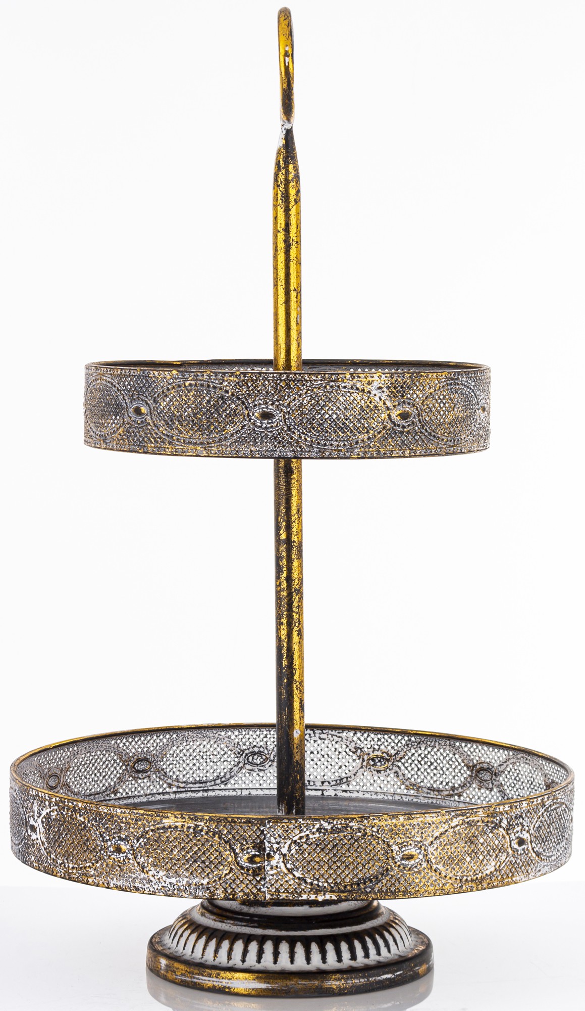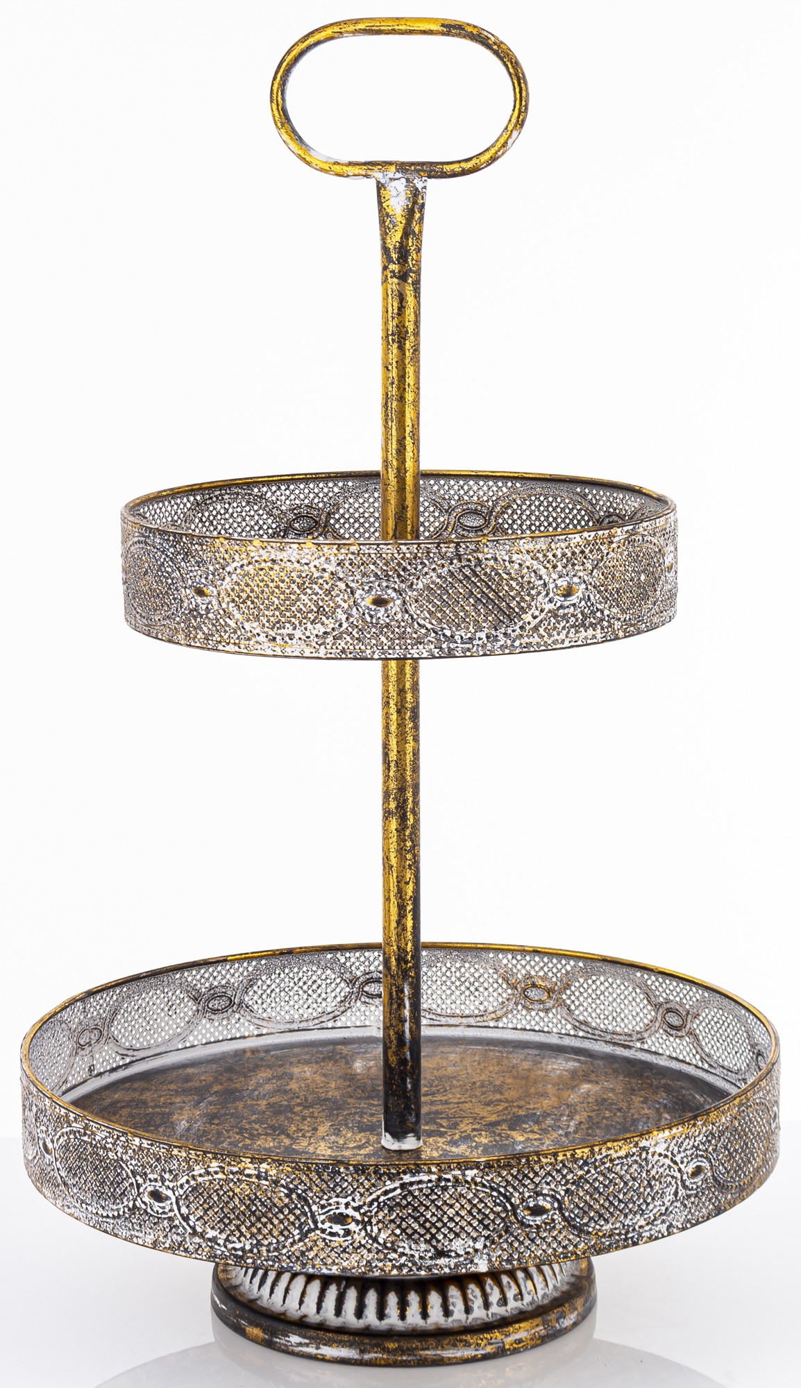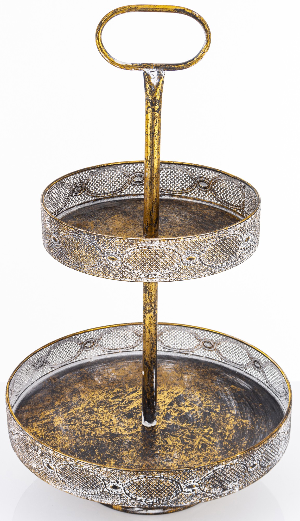 Vintage dvojposchodový podnos je roztomilý a praktický dekoratívny kúsok, ktorý dodá vášmu priestoru šarm a nostalgiu. Tento originálny podnos má jedinečný dizajn, ktorý odkazuje na vintage štýl a staré časy.