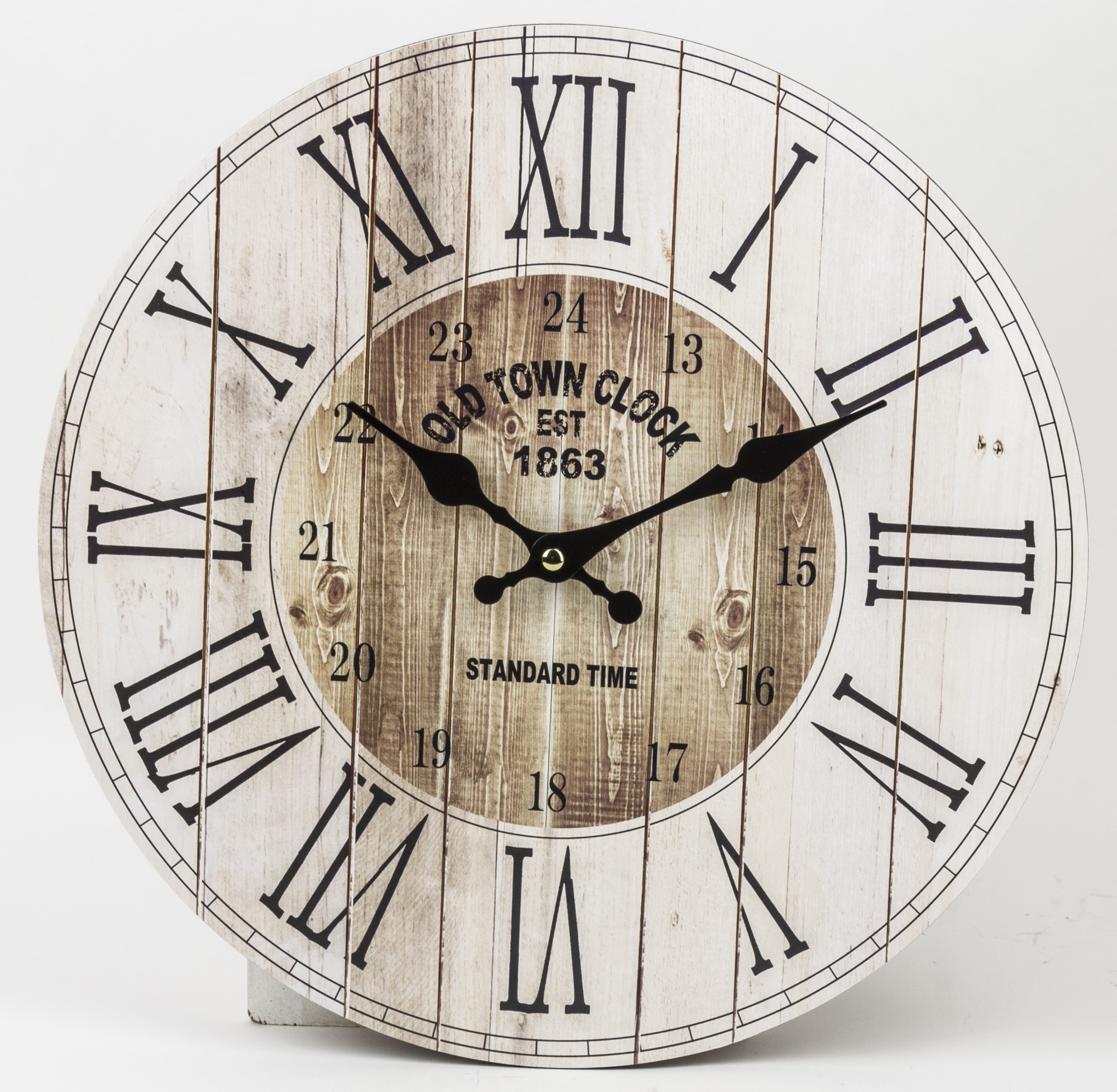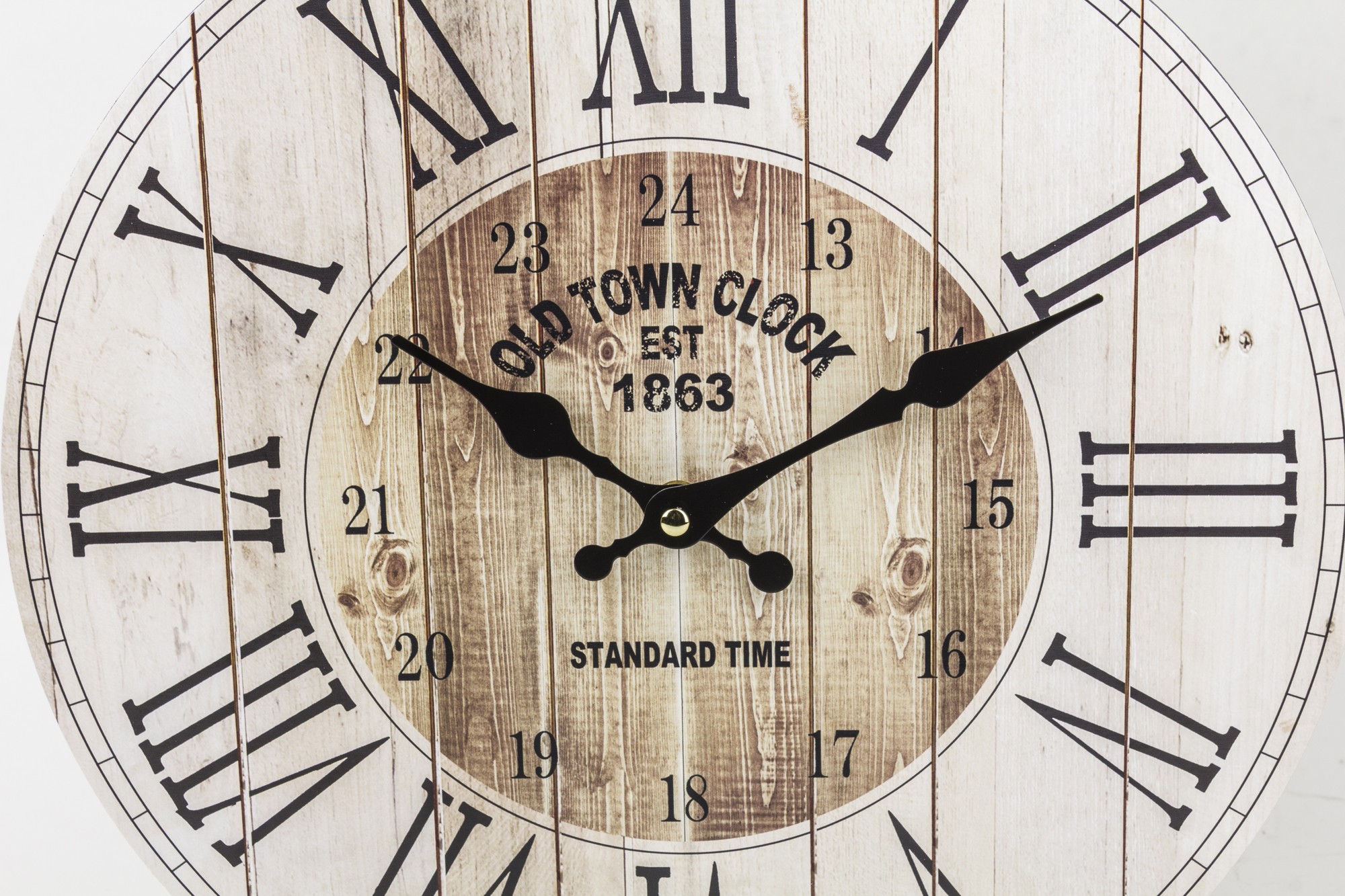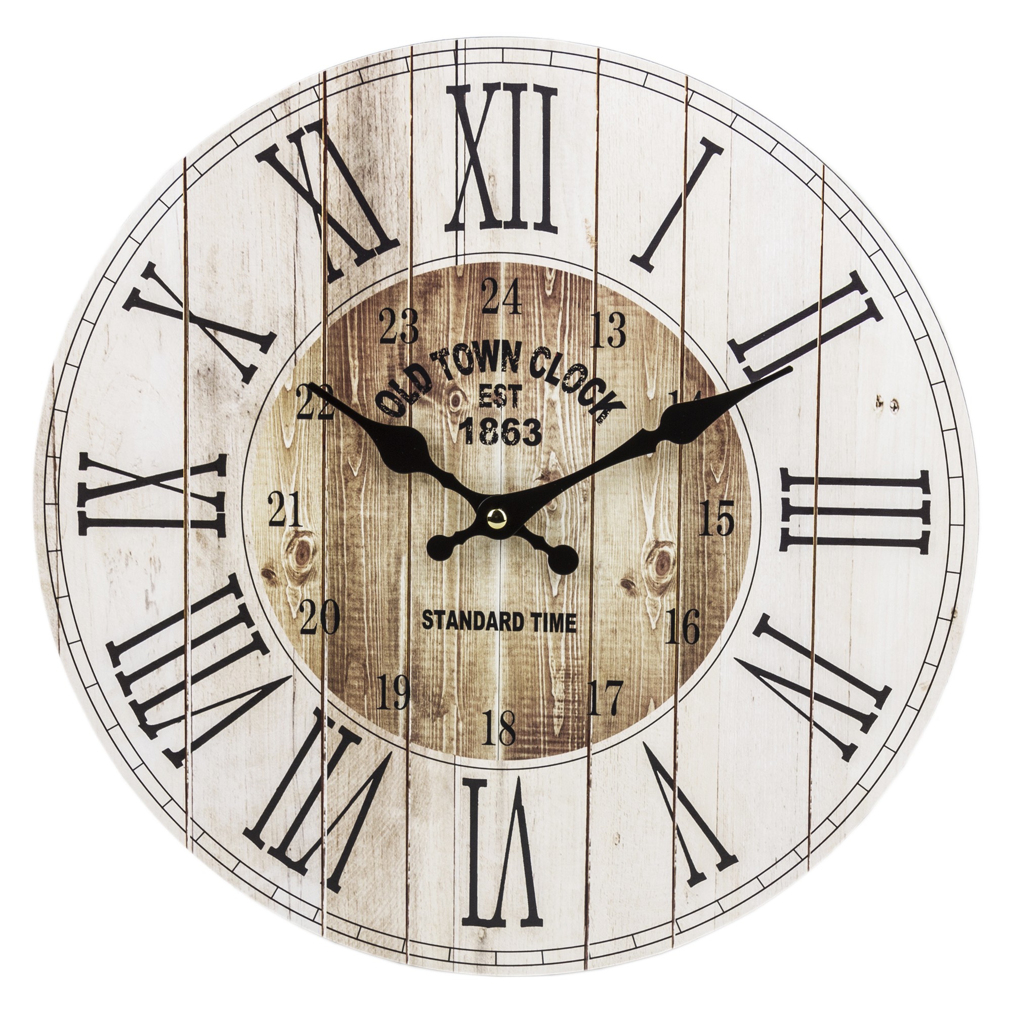 Vintage hodiny s rímskymi číslicami sú elegantným a klasickým doplnkom každého interiéru. Ciferník hodín je zdobený rímskymi číslicami, čo mu dodáva osobitý štýl. Hodiny majú okrúhly tvar a obvod ciferníka je vyrobený z mdf. Je to jedinečný dekoratívny prvok, ktorý dodá kúzlo každej miestnosti.