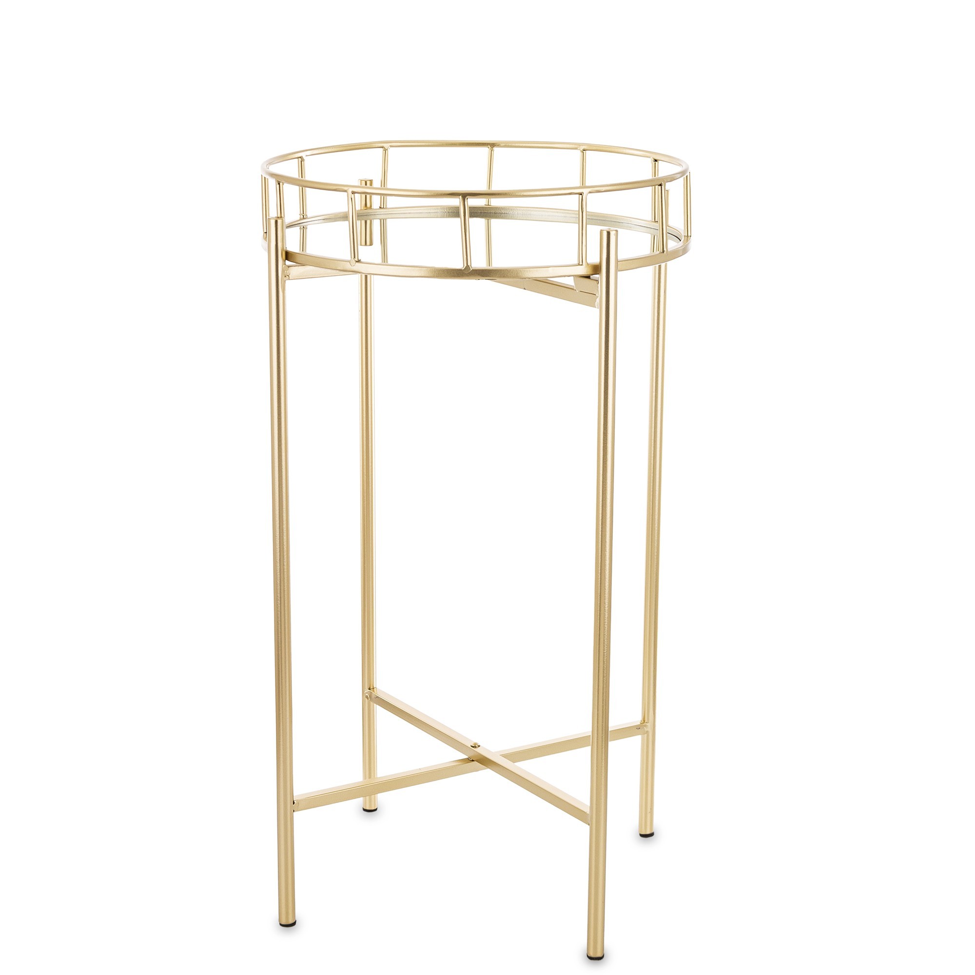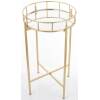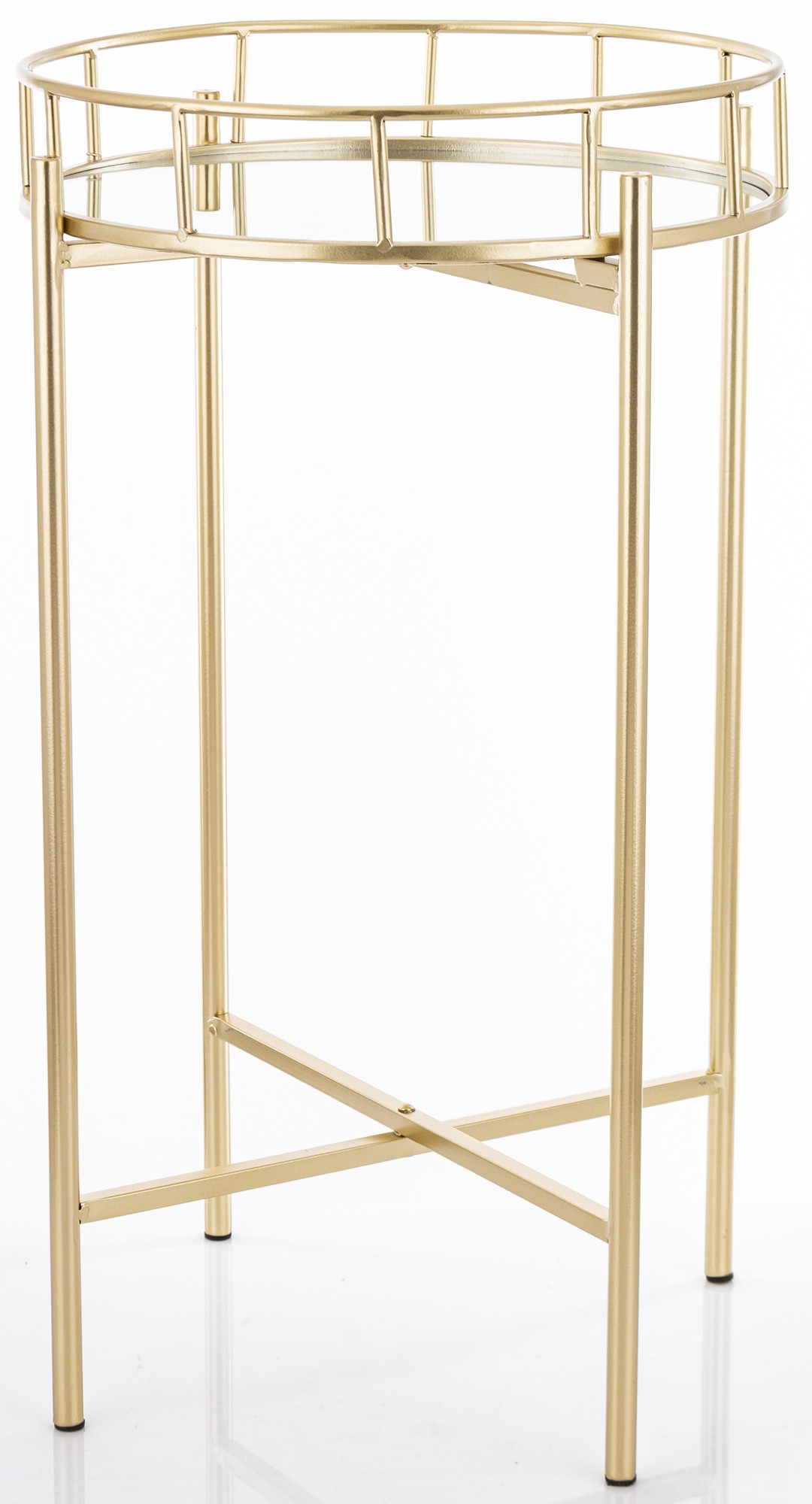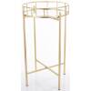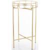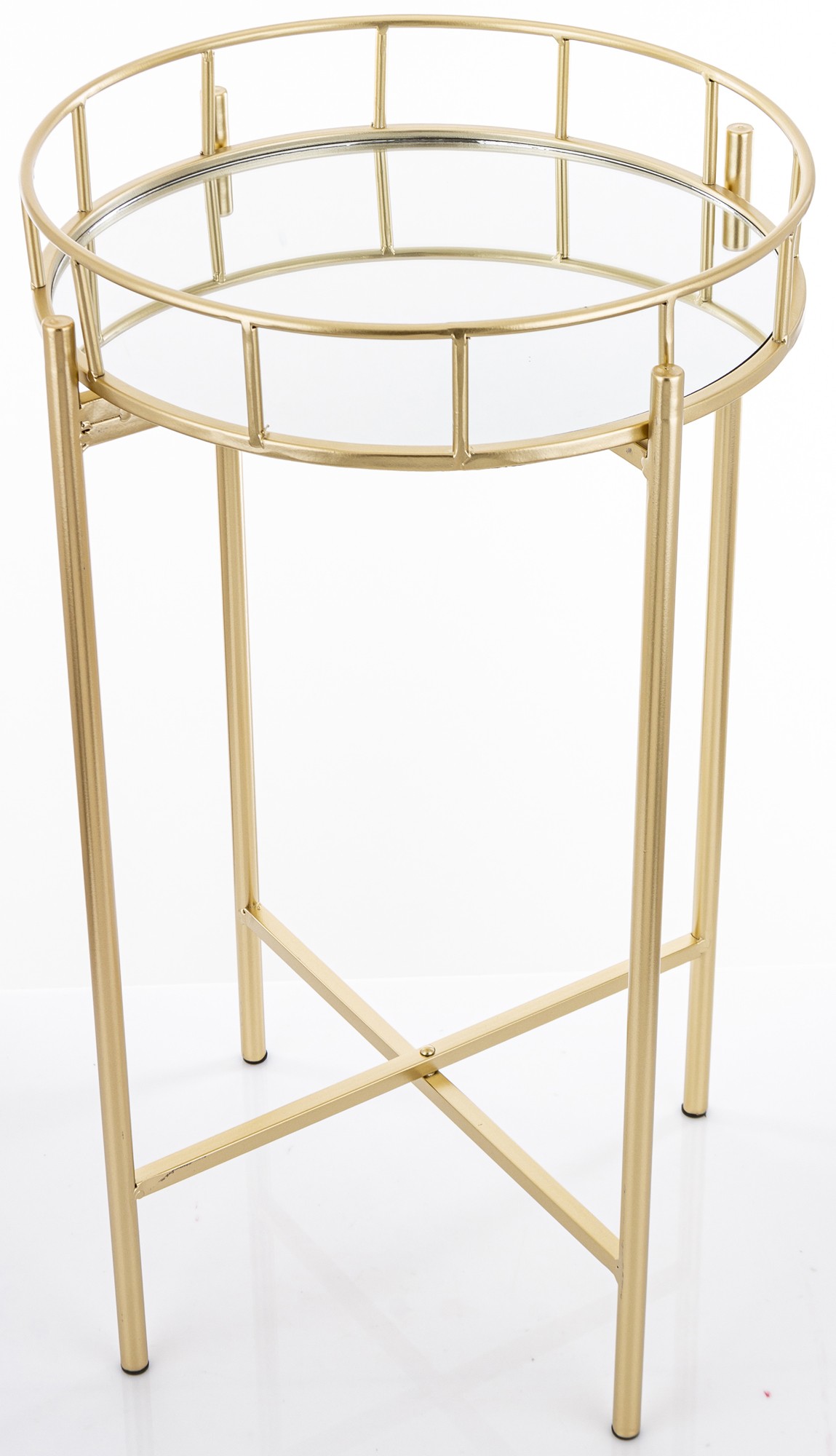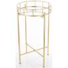 Stolík je vyrobený z odolného kovu v zlatej farbe, čo mu dodáva luxusný vzhľad. Vďaka zlatému odtieňu stola vyžaruje teplo a príťažlivosť a dodáva miestnosti zvláštny šarm.