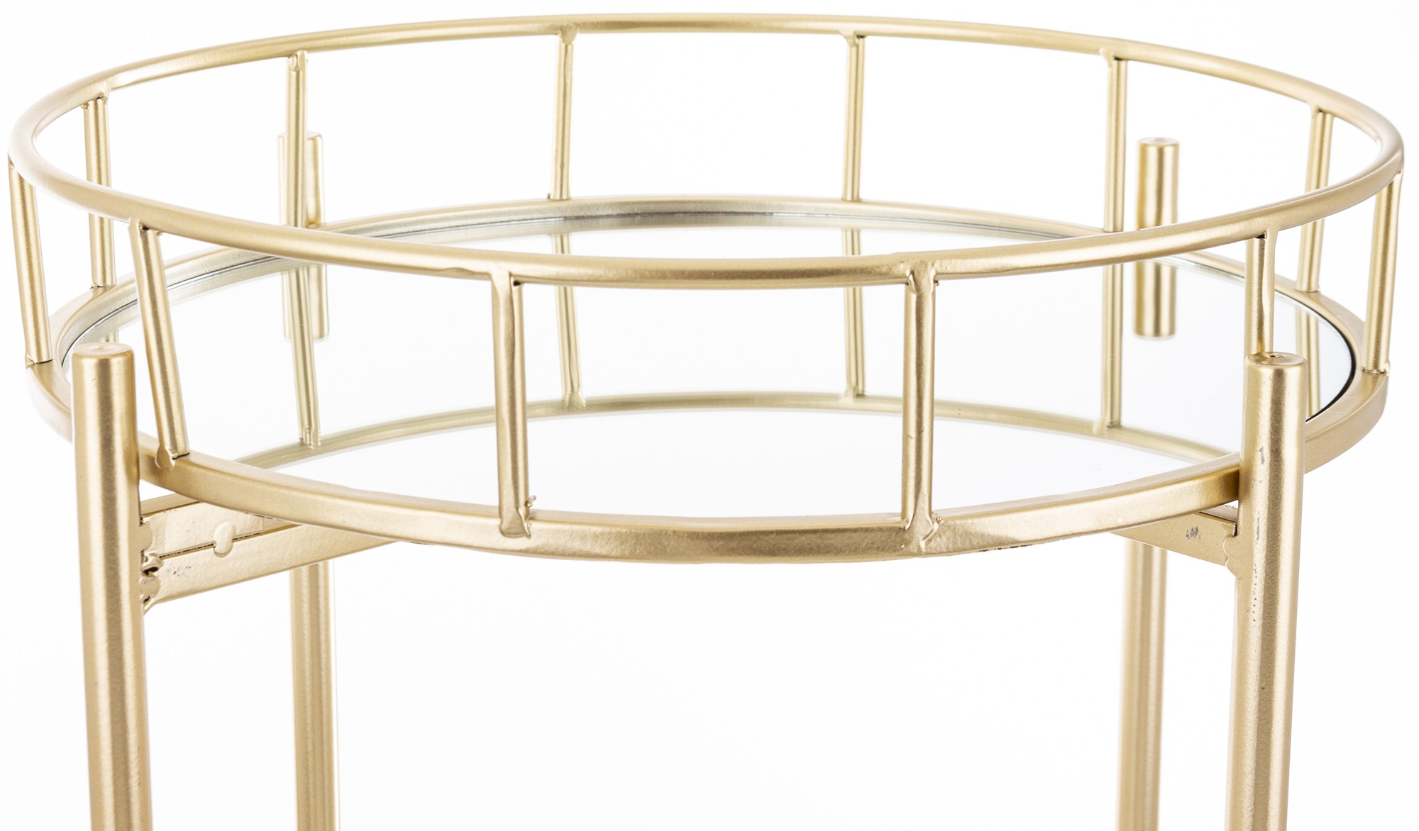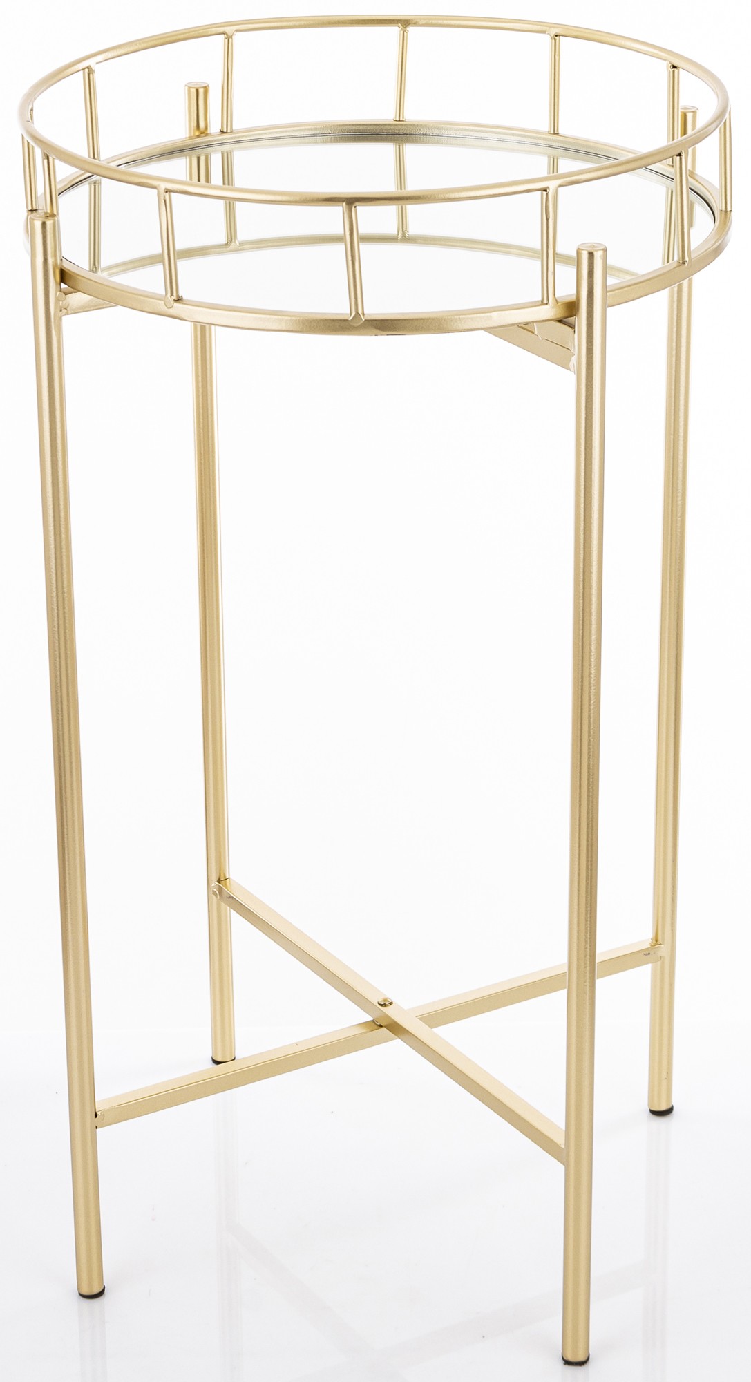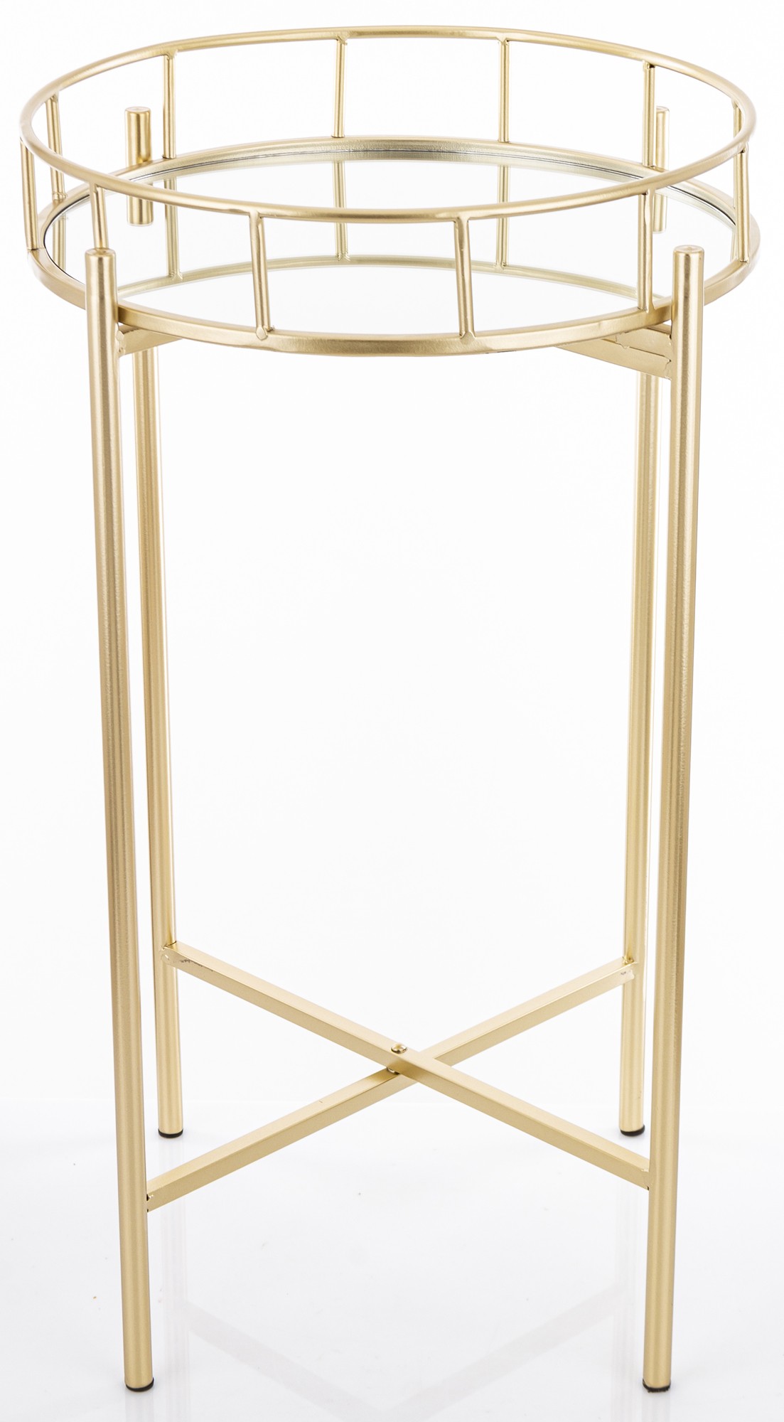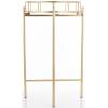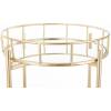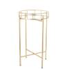 Stolík je vyrobený z odolného kovu v zlatej farbe, čo mu dodáva luxusný vzhľad. Vďaka zlatému odtieňu stola vyžaruje teplo a príťažlivosť a dodáva miestnosti zvláštny šarm.
