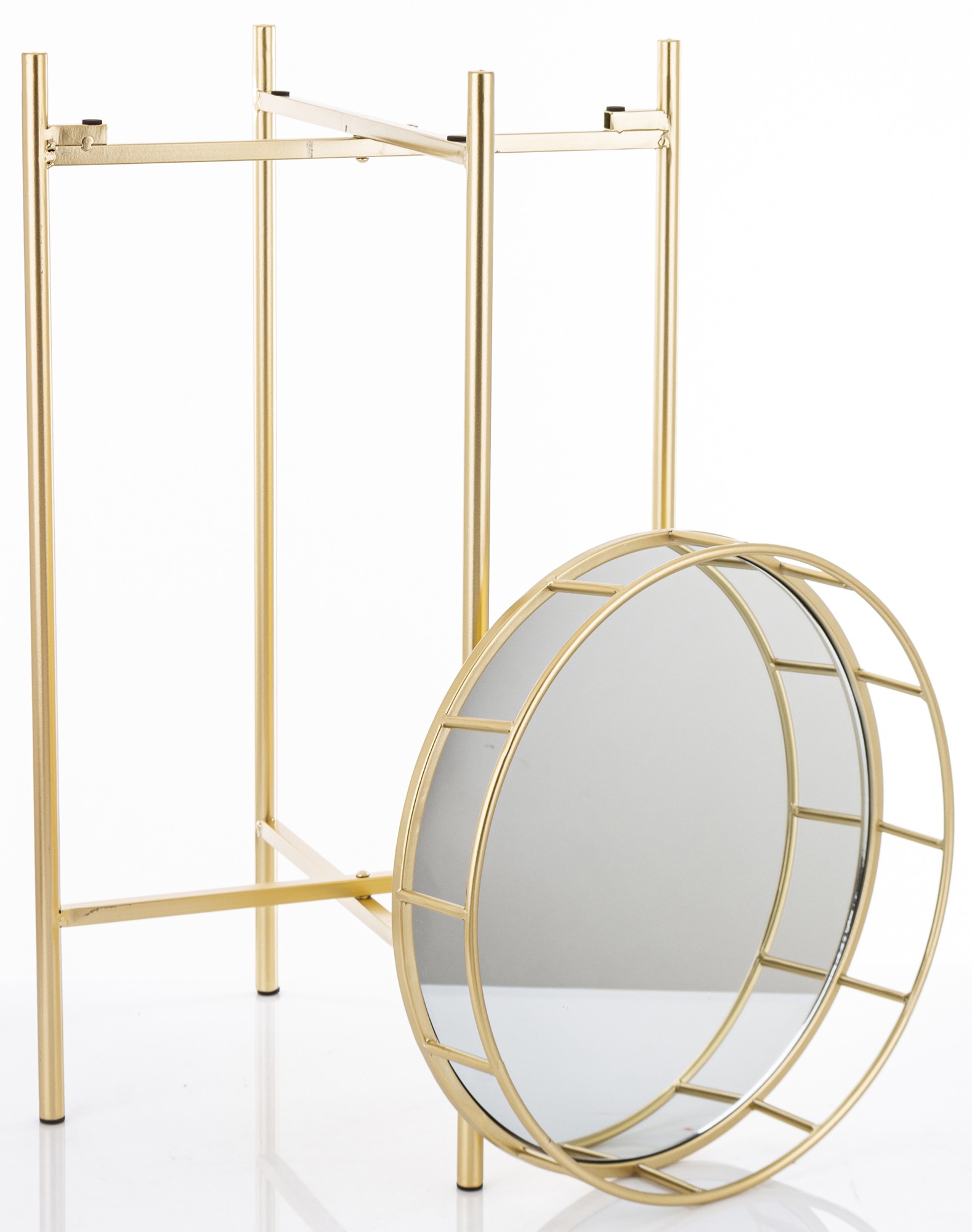 Zlatý kovový príručný stolík so zrkadlovou doskou je zvyčajne kompaktný, čo z neho robí dokonalý doplnok do rôznych priestorov. Môže pôsobiť ako odkladací stolík pri pohovke, nočný stolík vedľa postele alebo jedinečný dekoračný stolík do predsiene či chodby.