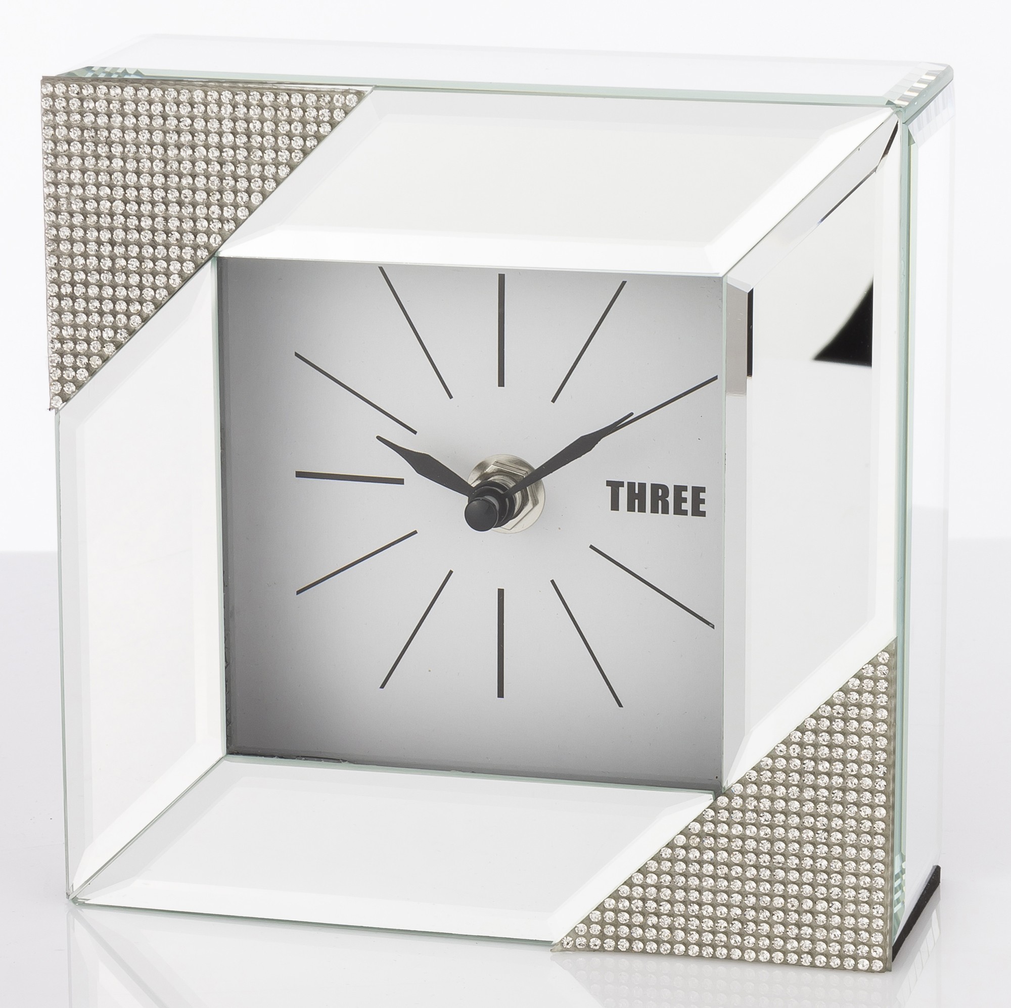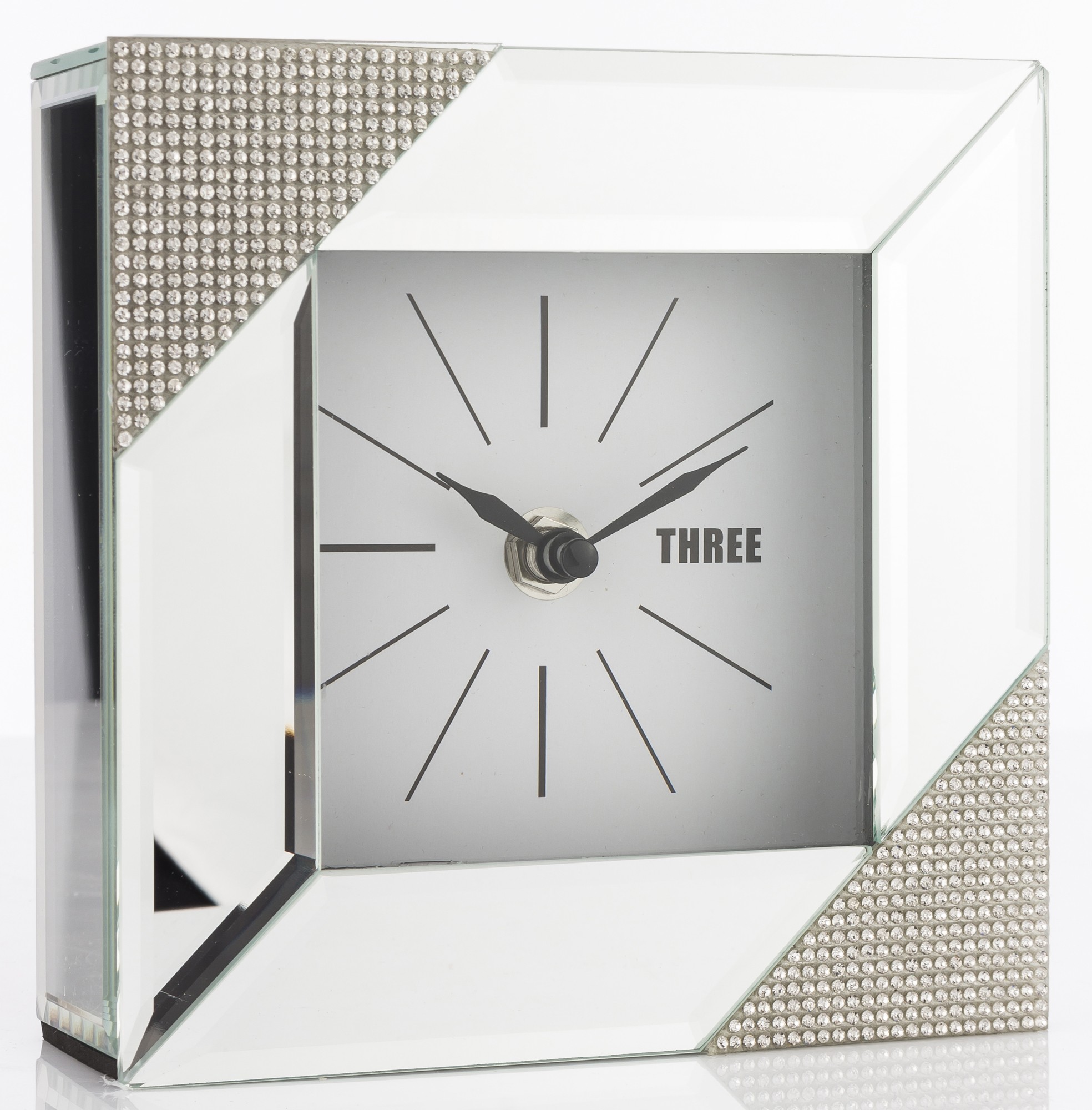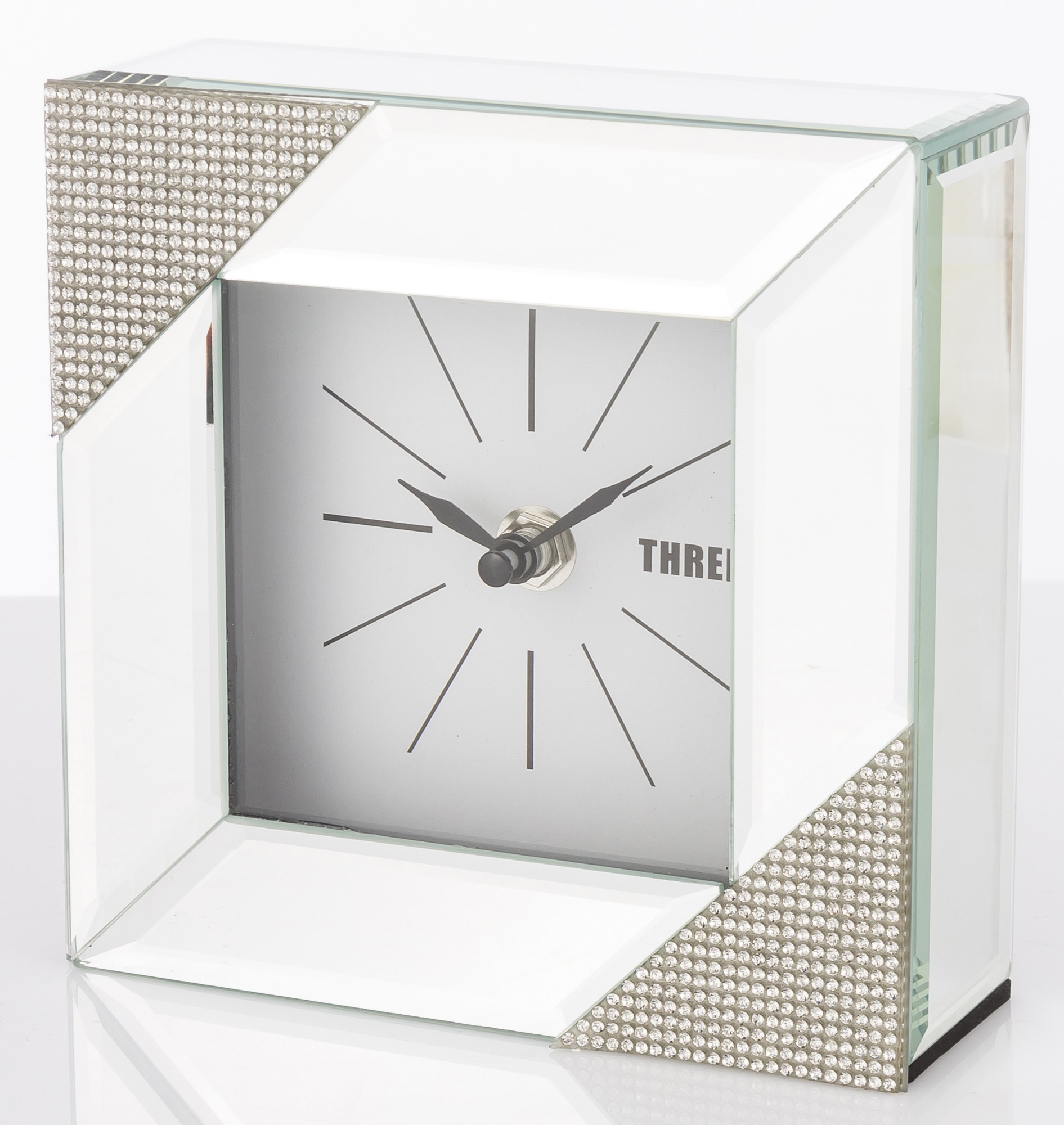 Štvorcové zrkadlové stolové hodiny sú elegantným a štýlovým doplnkom interiéru, ktorý spája funkciu hodín a dekoračného prvku. Tieto konkrétne hodiny majú štvorcový tvar a sú vyrobené zo zrkadlového skla, ktoré im dodáva moderný a glamour vzhľad.