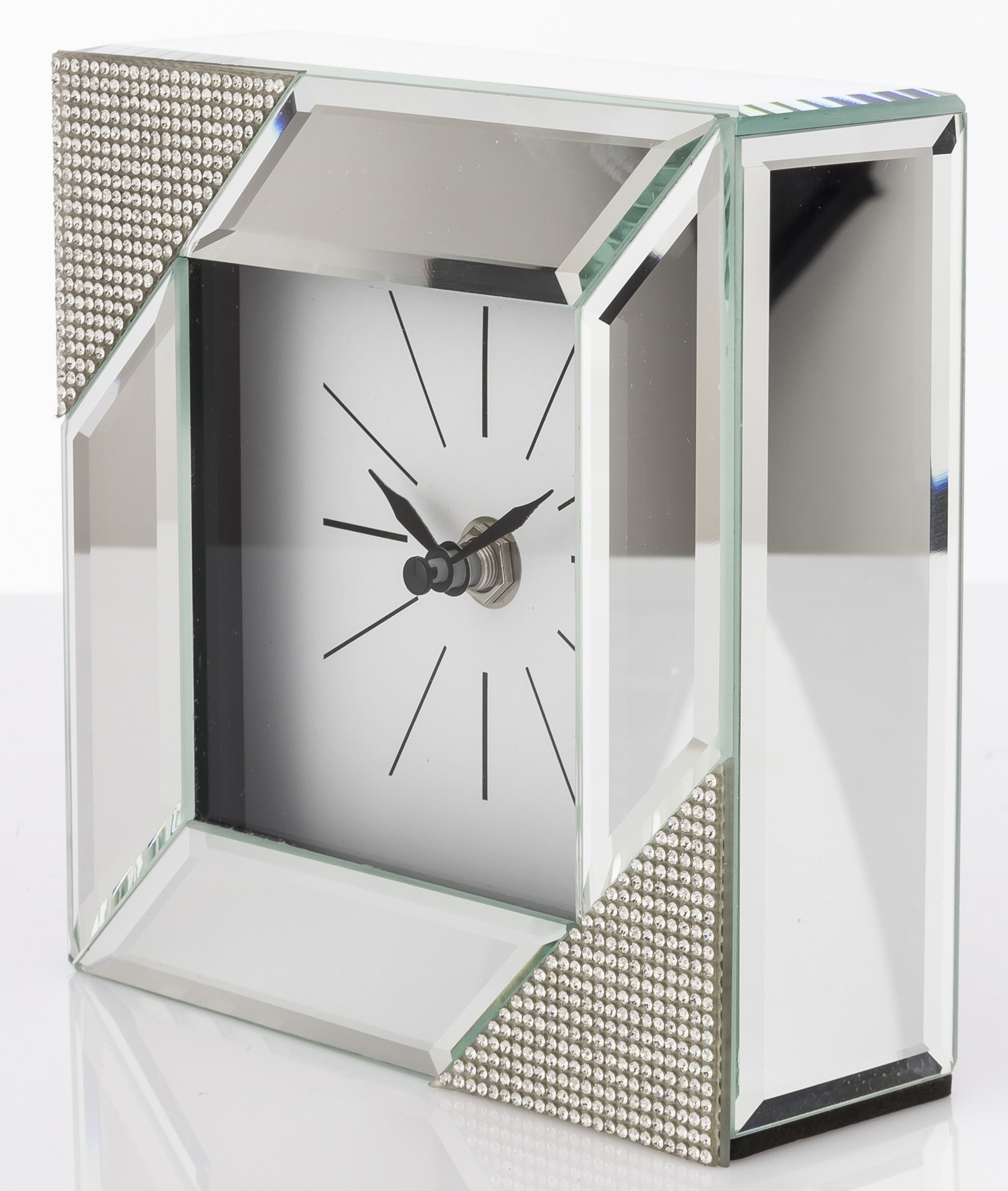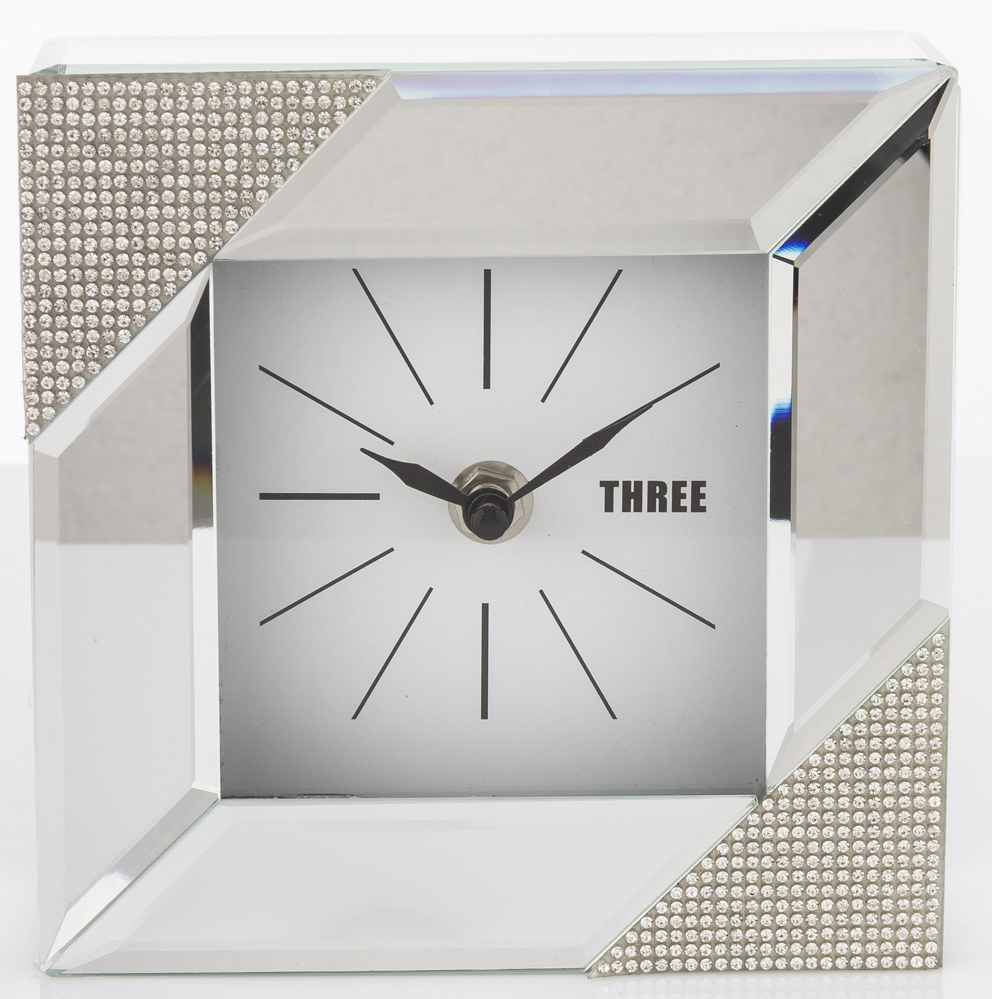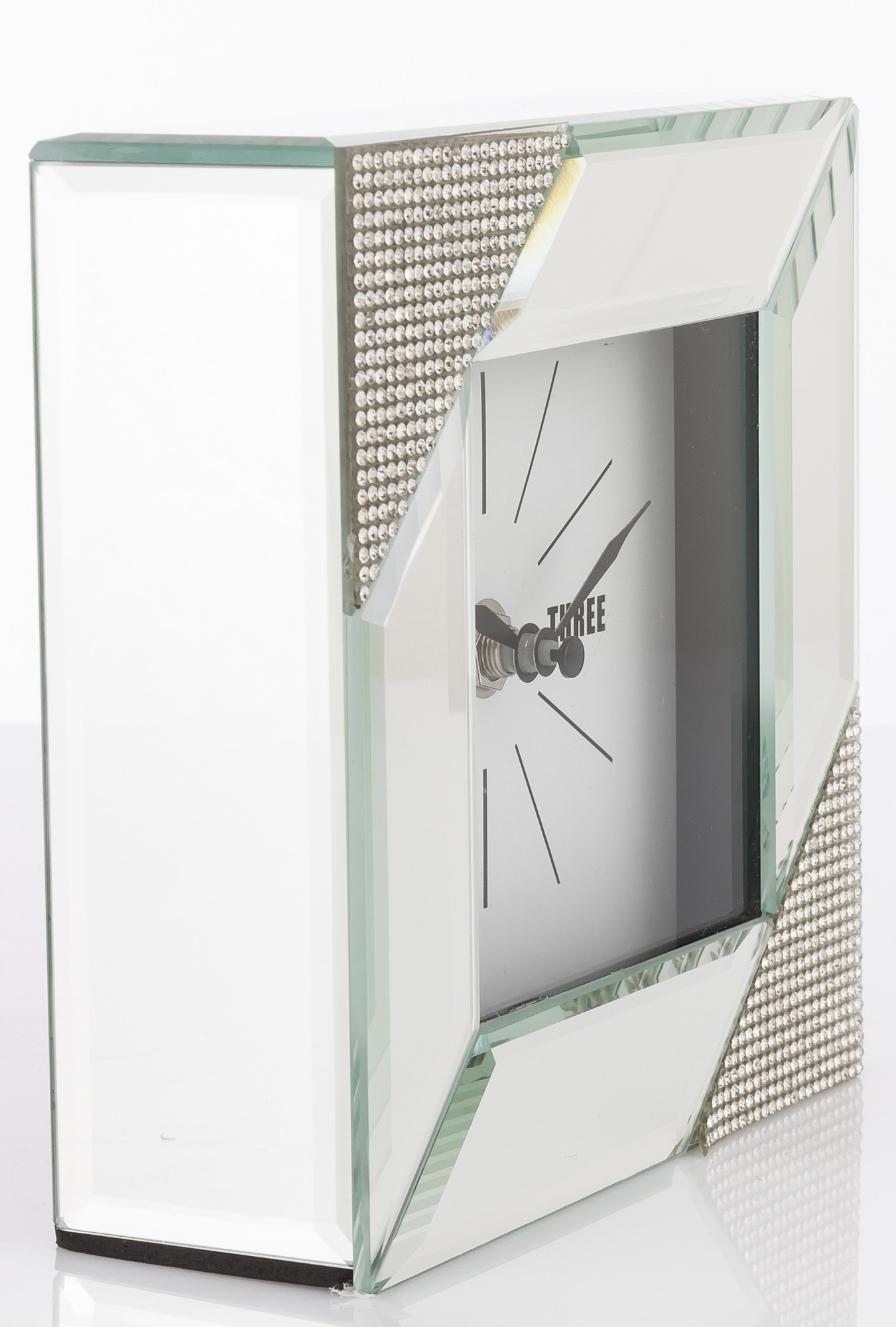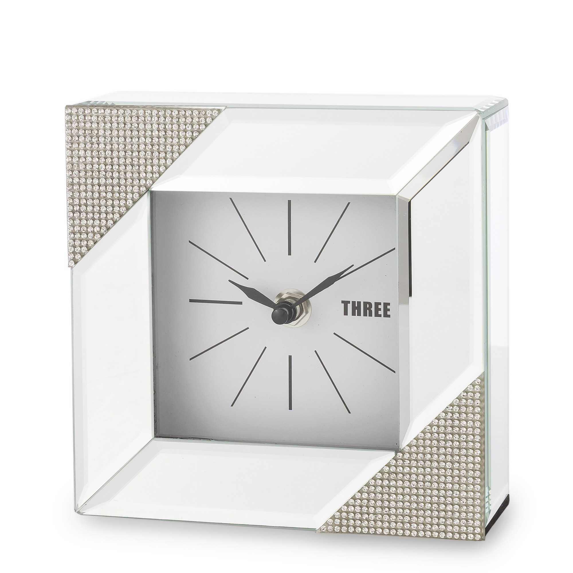 Štvorcové zrkadlové stolové hodiny sú elegantným a štýlovým doplnkom interiéru, ktorý spája funkciu hodín a dekoračného prvku. Tieto konkrétne hodiny majú štvorcový tvar a sú vyrobené zo zrkadlového skla, ktoré im dodáva moderný a glamour vzhľad.